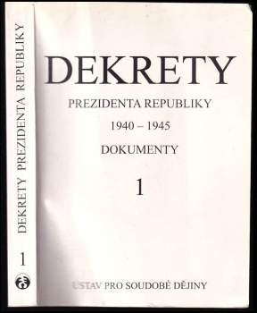 Dekrety prezidenta republiky 1940-1945 : dokumenty Vydání: 1 Místo vydání: Brno Počet stran: 1071 s. Rok vydání: 1995 Vazba: brožovaná Stav: dobrý, v prvním díle barevně podtrháváno plus pár vpisků propiskou Nakladatel: Doplněk Kategorie: Historické knihy