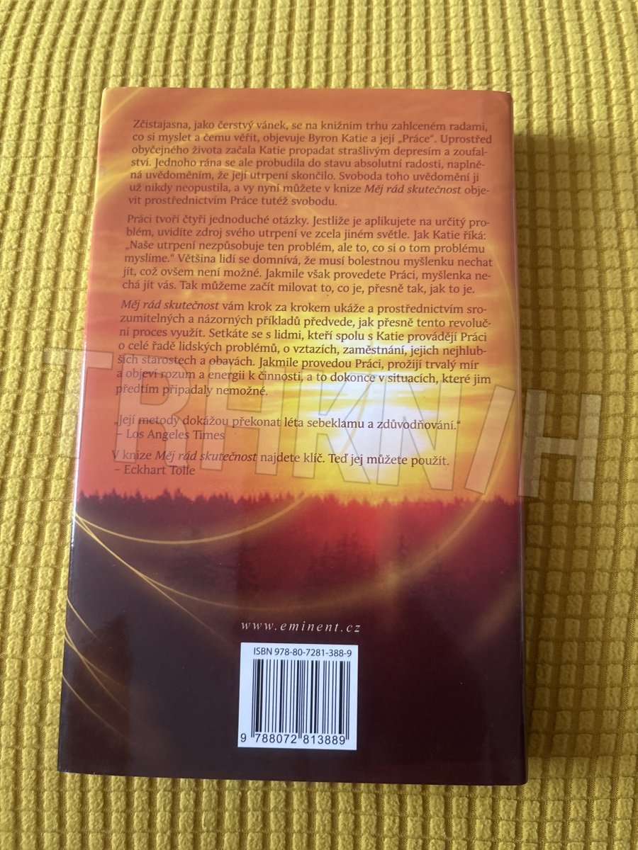 Zčistajasna, jako čerstvý vánek, se na knižním trhu zahlceném radami, co si myslet a čemu věřit, objevuje Byron Katie a její "Práce". Uprostřed obyčejného života začala Katie propadat strašlivým depresím a zoufalství. Jednoho rána se ale probudila do stavu absolutní radosti, naplněná uvědoměním, že její utrpení skončilo. Svoboda toho uvědomění ji už nikdy neopustila, a vy nyní můžete v knize Měj rád skutečnost objevit prostřednictvím Práce tutéž svobodu.