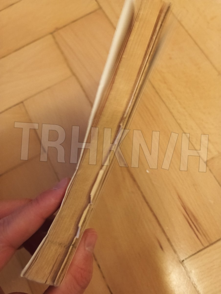Přední obálka nahoře ohyb tvaru trojúhelník cca 3 x 3 cm.