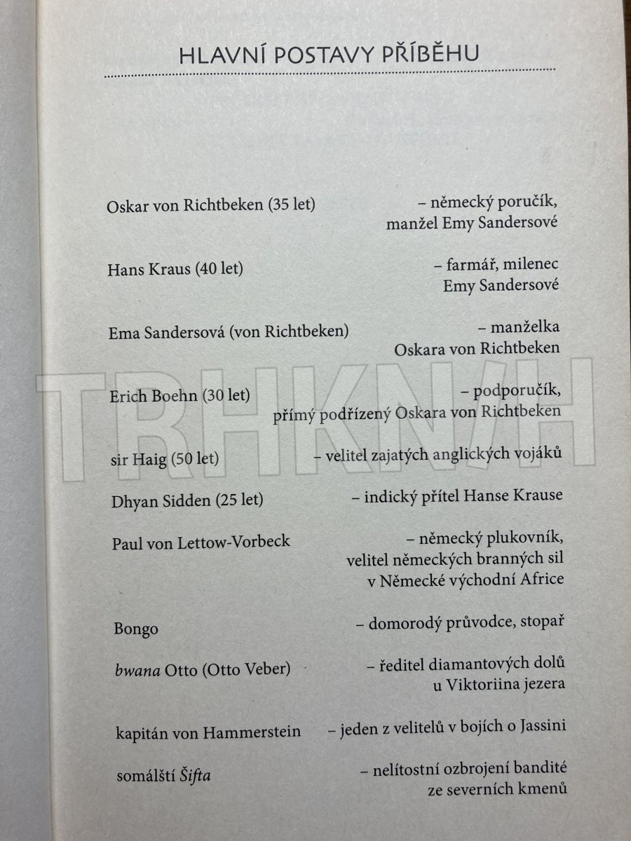 Když boje první světové války dorazí až do východní Afriky, křehká a vzdělaná Ema se svému muži Oskarovi, nadšenému důstojníku německé armády, odcizí natolik, že chladnoucí vztah vyústí téměř v citový odpor. Ema hledá východisko v milostném románku.