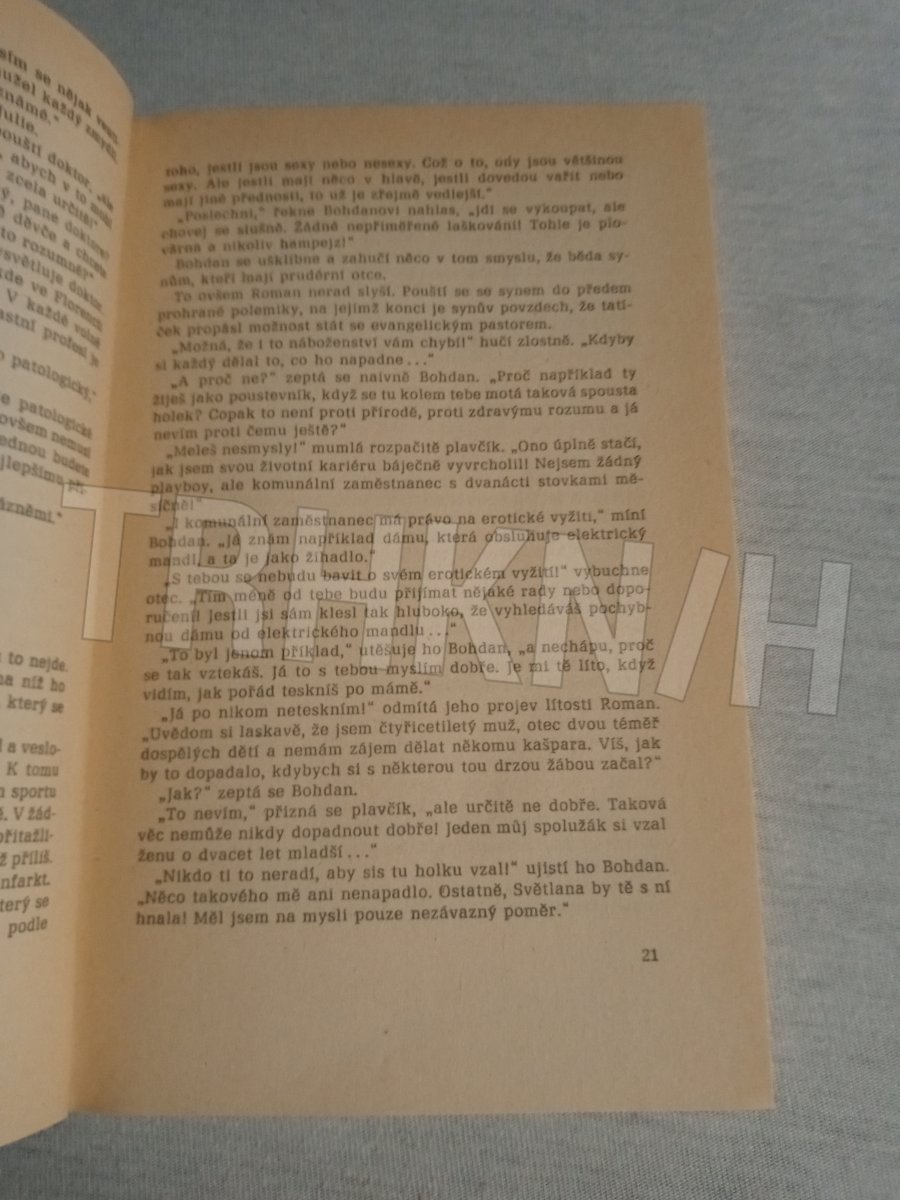 Humoristický román o poznání, že i čtyřicátník může být zasažen vzdutou vlnou sexu a erotiky. Základem příběhu je láska mezi 40letým rozvedeným plavčíkem, otcem dvou dospívajících dětí, bývalým námořníkem zaoceánské lodi a o něco mladší magistrou, vdovou,