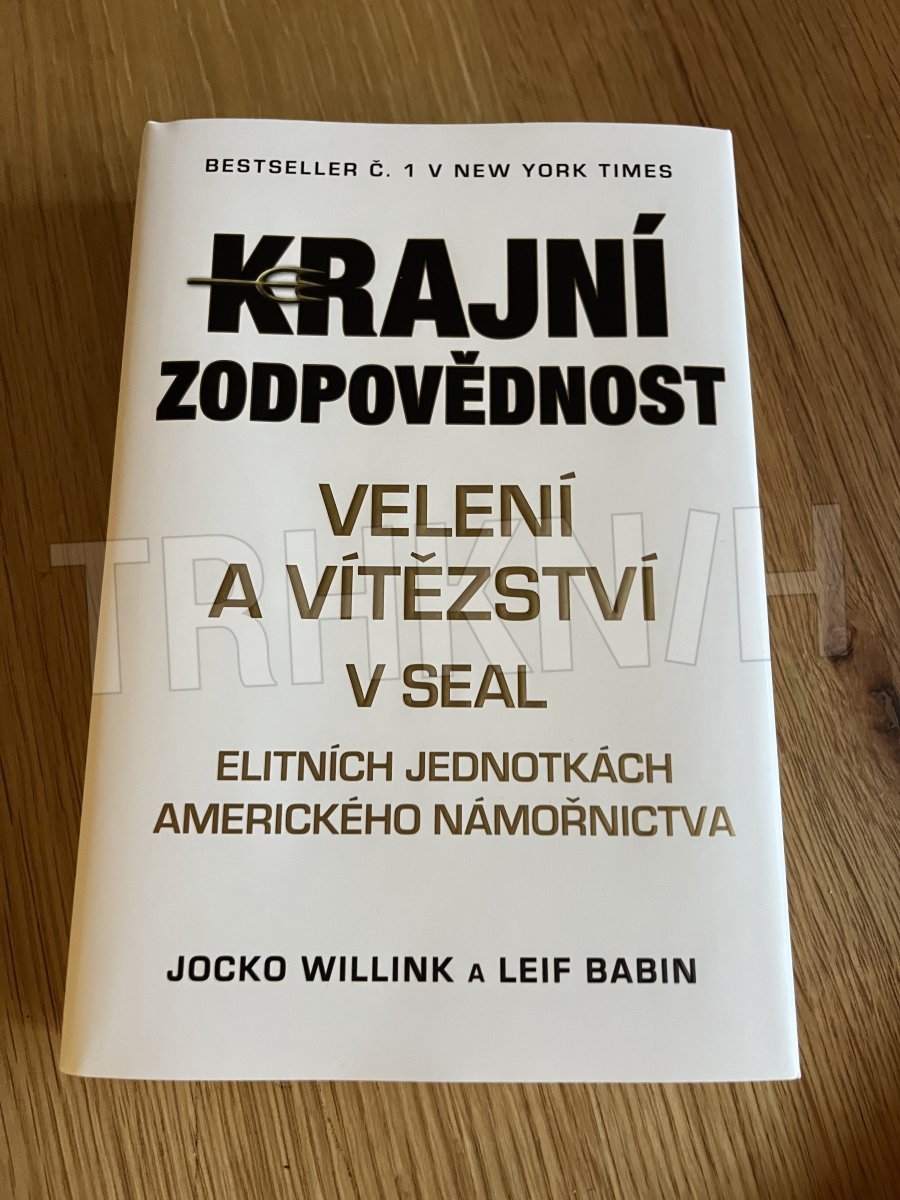 Krajní zodpovědnost - strhující vyprávění s přesvědčivým poučením a možností přímé aplikace přímo vnucuje nový způsob vedení podniků a současně vyzývá vedoucí pracovníky na všech pozicích, aby naplnili své poslání: vedli a vítězili. Speciální bojová jednotka SEAL, které veleli Jocko Willink a Leif Babin, byla vyslaná do nejnebezpečnější bojové zóny v Iráku, aby tam splnila zdánlivě nesplnitelný úkol: poskytla pomoc americkým ozbrojeným silám a spolu s nimi nastolila bezpečnost v Ramádí, v městě považovaném za „ztracené“. Ve chvílích hrdinství, tragický ztrát a těžce vybojovaných vítězství speciální bojové jednotky Bruiser z 3. týmu SEAL dospěli k poznání, že velitel – na každé úrovni – je nejdůležitějším faktorem rozhodujícím o tom, zda tým, který vede, uspěje nebo selže. Autoři se po návratu z mise v Iráku začali v týmech SEAL věnovat budování výcviku zaměřenému na velení, pomáhali formovat novou generaci velitelů v týmech SEAL. Později založili společnost Echelon Front a pod její hlavičkou učí vedoucí pracovníky v podnikové sféře i v různých organizacích. Používají přitom stejné principy, jaké se uplatňují v týmech SEAL. K jejich klientům patří začínající společnosti, ale i společnosti ze seznamu 500 největších amerických společností podle každoročního výběru časopisu Fortune. Babin a Willink pomohli celé řadě klientů z nejrůznějších odvětví vybudovat špičkové výkonné týmy. Autoři podrobně popisují způsoby myšlení i principy, které jednotkám SEAL umožňují plnit ty nejtěžší bojové úkoly, ale i to, jak se ty samé principy a způsoby myšlení dají aplikovat ve všech týmech či organizacích. Každá kapitola je věnovaná jinému tématu – například jak se krýt a přitom postupovat kupředu, jak uplatňovat decentralizované vedení, nebo jak vést v organizačním schématu shora dolů i zdola nahoru. Vysvětluje daný princip, proč je důležitý i jak ho zavést do praxe v prostředí, ve kterém je nutné lidi řídit.
