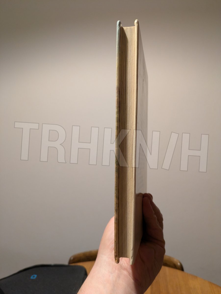 Desky jsou ošoupané, je na nich více rýh, hrany hřbetu jsou otlačené, horní rohy desek jsou ohnuté, vzadu na deskách josu tři hnědé fleky, první dva listy jsou u hřbetu malinko odřené, vnitřek knihy je pěkný.