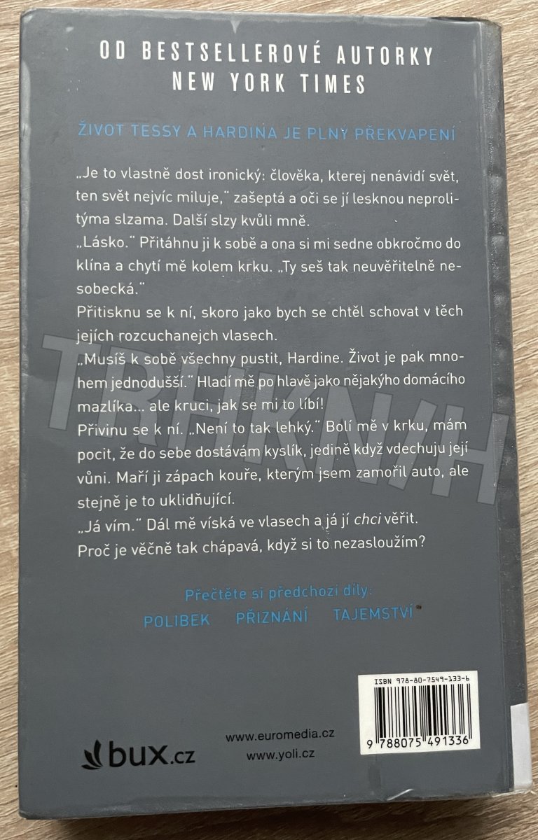Život Tessy a Hardina je plný překvapení. Jejich vztah je osudový, přestože neustále zkoušený další a další překážkou, které se jim staví do cesty. Šokující pravdy o obou rodinách, které vyplavaly na povrch, nasvědčují, že mezi milenci není velký rozdíl. Tessa už dávno není milá, naivní a poslušná dívka, kterou byla, když poznala Hardina, právě tak jako on už není nemilosrdný, mrzutý potížista, do kterého se bezhlavě zamilovala. Tessa má pro jeho výbušnou povahu pochopení a jako jediná dokáže utišit jeho rozbouřené emoce. Hardin Tessu potřebuje. Čím víc pravdy o jeho minulosti však vychází na světlo, tím víc se poddává démonům své minulosti a Tessu i ostatní blízké od sebe odhání. Tessa se už vzdává naděje, že ho dokáže zachránit. Jedině že by obětovala samu sebe. Stojí jí však láska za tak vysokou cenu? Tessa se odmítá vzdát bez boje. Za koho však ve skutečnosti bojuje? Za Hardina, anebo za sebe samu? Čtvrtá kniha z úspěšné série AFTER, která se stala literárním fenoménem všech dob a dočkala se více než miliardy přečtení online.