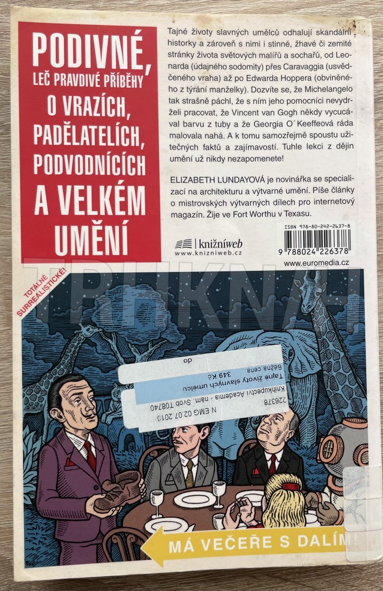 Tajné životy slavných umělců odhalují skandální historky a zároveň s tím i stinné, žhavé či zemité stránky života světových malířů a sochařů, od Leonarda (údajného sodomity) přes Caravaggia (usvědčeného vraha) až po Edwarda Hoppera (obviněného z týrání manželky). Dozvíte se, že Michelangelo tak strašně páchl, že s ním jeho pomocníci nevydrželi pracovat, že Vincent van Gogh někdy vycucával barvu z tuby a že Georgia O´Keeffeová ráda malovala nahá. A k tomu samozřejmě spoustu užitečných faktů a zajímavostí. Tuhle lekci z dějin umění už nikdy nezapomenete!