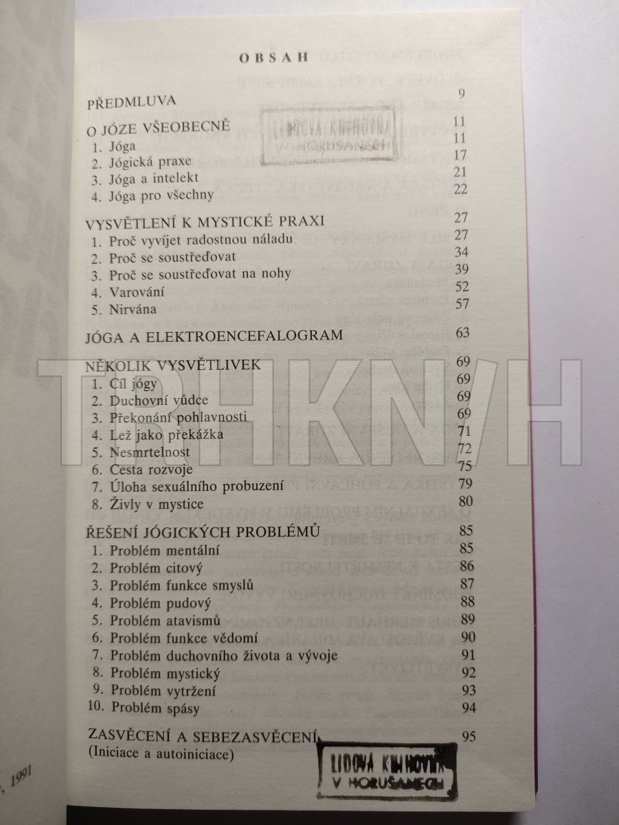 Úvodní práce nejprve vysvětlují, jaký smysl vlastně má jóga a jaké má místo v každodenním životě normálního občana, jak pomáhá řešit životní problémy. Značnou pozornost věnuje způsobu soustředění, varuje před jeho nesprávným pochopením a v práci, jejímž s