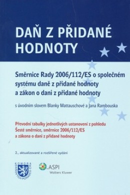 Druhé, aktualizované a rozšířené vydání publikace, která obsahuje souhrn všech předpisů upravujících harmonizovanou oblast daně z přidané hodnoty ve znění k 1. 1. 2008. Do publikace jsou zařazeny také směrnice Rady 2008/8/ES a 2008/9/ES z února 2008, které od roku 2010 přinesou novou úpravu pravidel vracení daně a stanovení místa plnění u služeb.