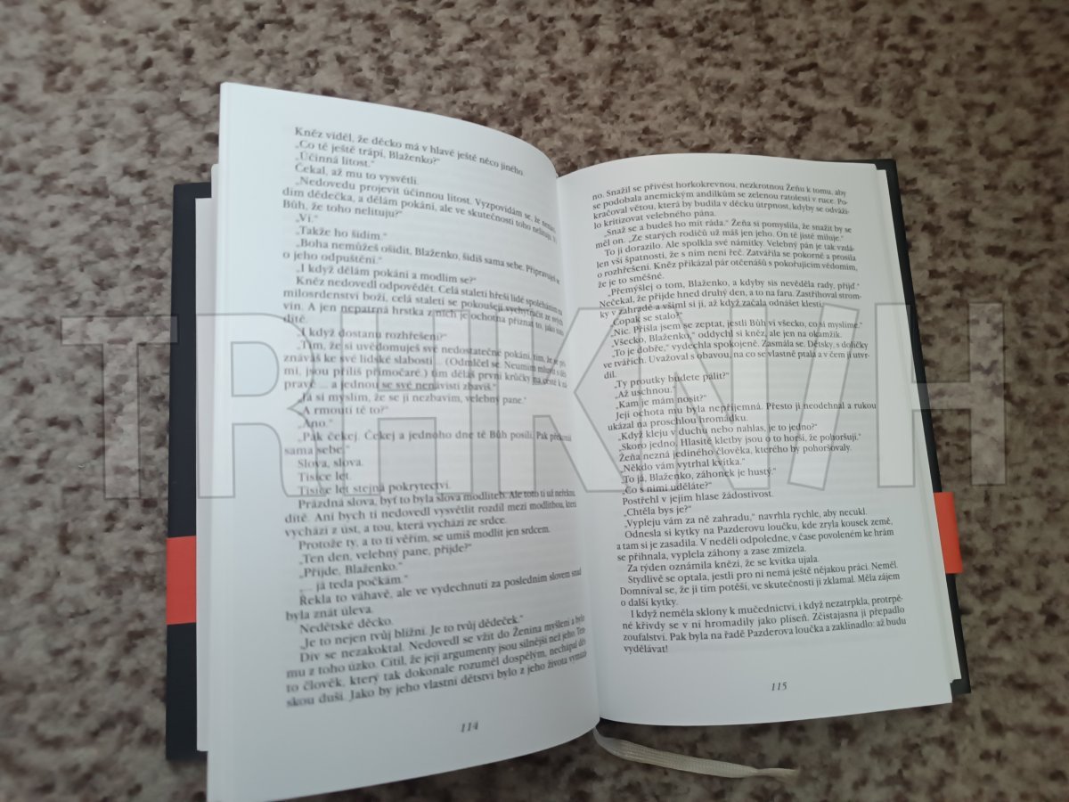 Maličké natržení červeného reklamního proužku přes knihu (víz foto)