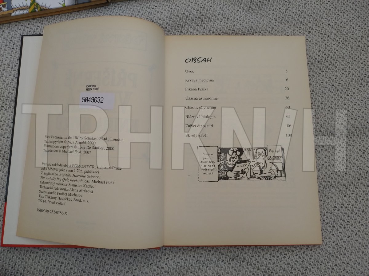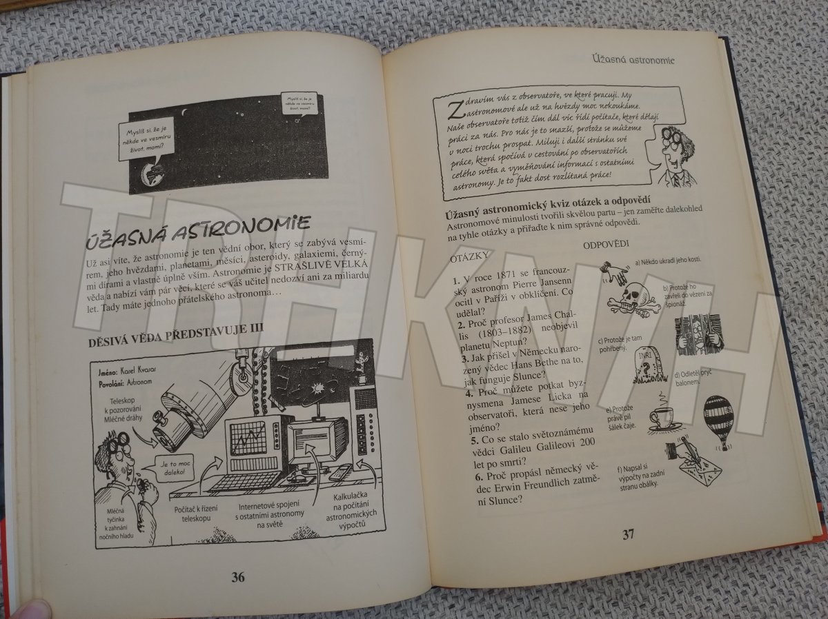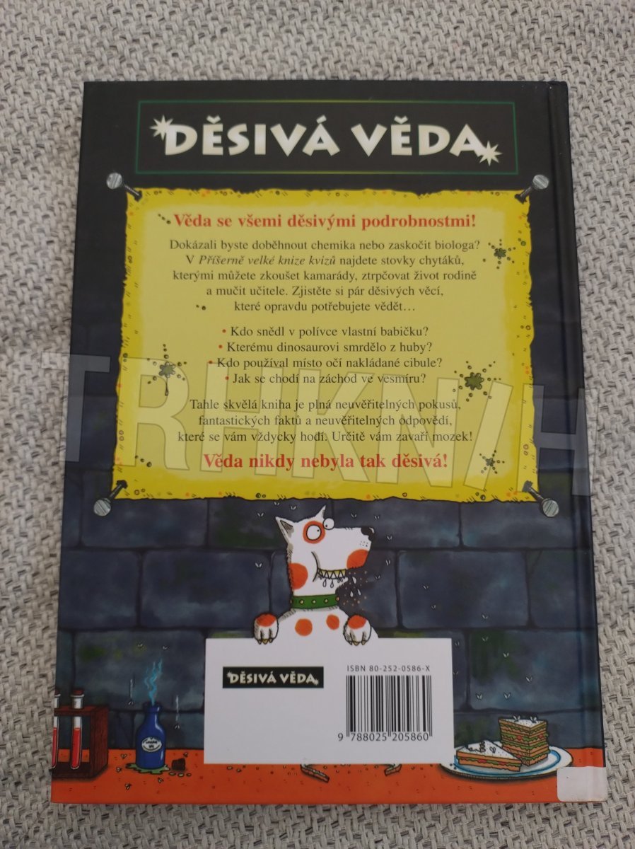 Dokázali byste doběhnout chemika nebo zaskočit biologa? V Příšerně velké knize kvizů najdete stovky chytáků, kterými můžete zkoušet kamarády, ztrpčovat život rodině a mučit učitele. Zjistěte si pár děsivých věcí, které opravdu potřebujete vědět, například kdo snědl v polívce vlastní babičku, jestli dinosaurům páchlo z tlamy, kdo používal místo očí nakládané cibule nebo jak se chodí na záchod ve vesmíru. Tahle skvělá kniha je plná úžasných pokusů, fantastických faktů a neuvěřitelných odpovědí, které se vám vždycky hodí. Určitě vám zavaří mozek! Věda nikdy nebyla tak děsivá!
