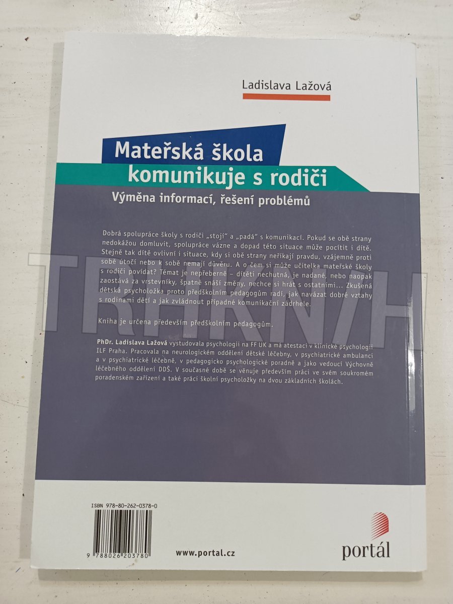 Dobrá spolupráce školy s rodiči „stojí a padá“ s komunikací. Pokud se obě strany nedokážou domluvit, spolupráce vázne a dopad této situace může pocítit i dítě. Stejně tak dítě ovlivní i situace, kdy si obě strany neříkají pravdu, vzájemně proti sobě útočí nebo k sobě nemají důvěru. A o čem si může učitelka mateřské školy s rodiči povídat? Témat je nepřeberně – dítěti nechutná, je nadané, nebo naopak zaostává za vrstevníky, špatně snáší změny, nechce si hrát s ostatními… Zkušená dětská psycholožka proto především předškolním pedagogům radí, jak navázat dobré vztahy s rodinami dětí a jak zvládnout případné komunikační zádrhele. Kniha je určena především předškolním pedagogům.