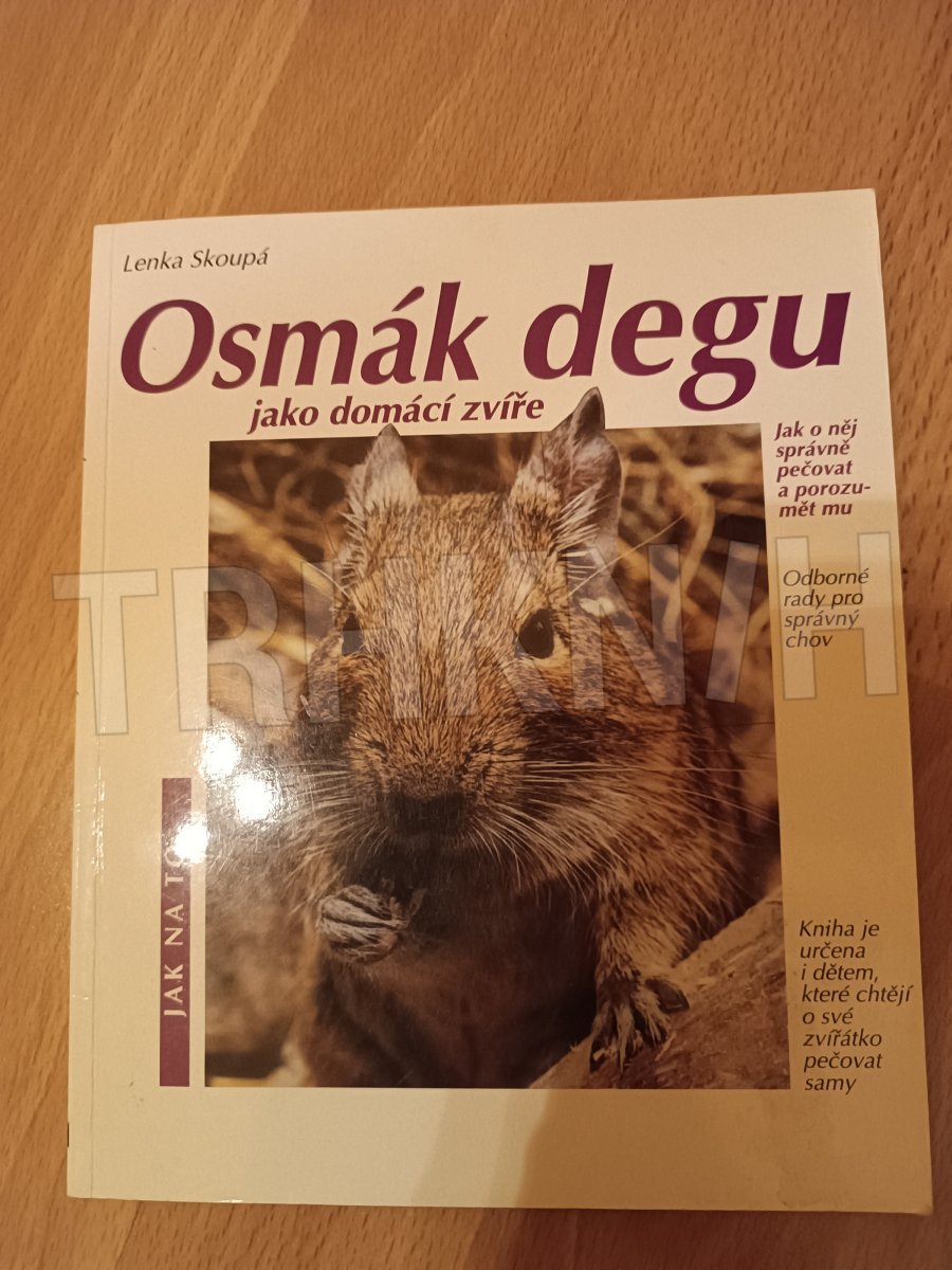 Osmák degu jako domácí zvíře : porozumění a správná péče Autor: Skoupá, Lenka Vydání: 1 Místo vydání: Praha Počet stran: 56 s. Rok vydání: 2000 Vazba: brožovaná Stav: dobrý, vlepeny články o osmácích Nakladatel: Jan Vašut Kategorie: Zoologie Edice, série