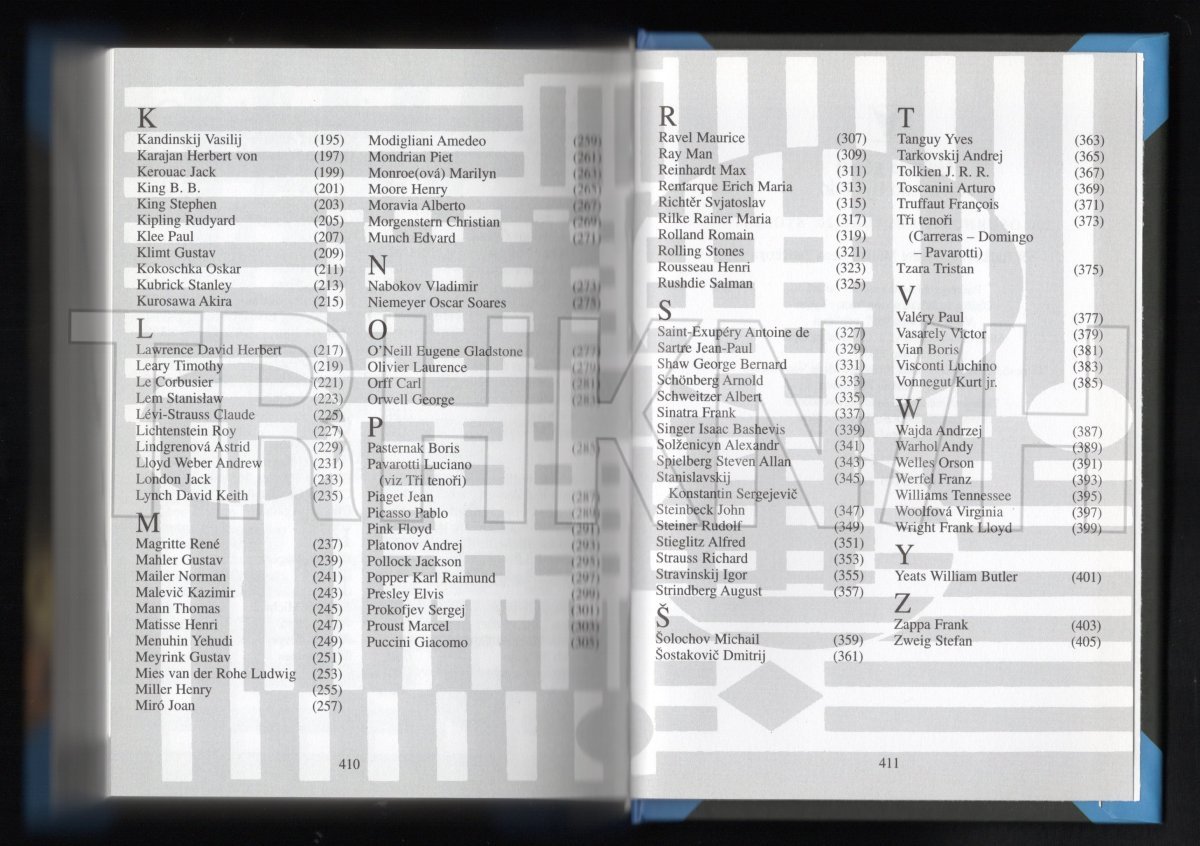 Knižní aktualizované vydání populární encyklopedie (původně vydané v podobě karet) přináší ve stručných a výstižných portrétech přehled 200 nejvýznamnějších osobností kultury 20. století. Mezi osobnostmi uvedenými v knize najdete mezi nimi jména jako Charlie Chaplin, Luis Armstrong, Agatha Christie nebo Steven Spilberg…