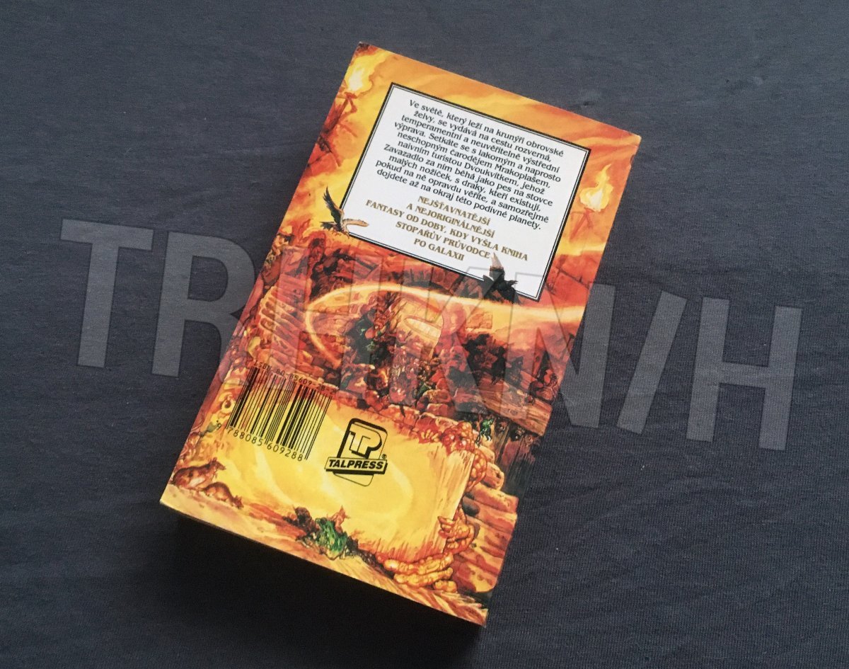 Ve světě, který leží na krunýři obrovské želvy, se vydává na cestu rozverná, temperamentní a neuvěřitelně výstřední výprava. Setkáte se s lakomým a naprosto neschopným čarodějem Mrakoplašem, naivním turistou Dvoukvítkem, jehož Zavazadlo za ním běhá jako pes na stovce malých nožiček, s draky, kteří existují pokud na ně opravdu věříte, a samozřejmě dojdete až na okraj této podivné planety.