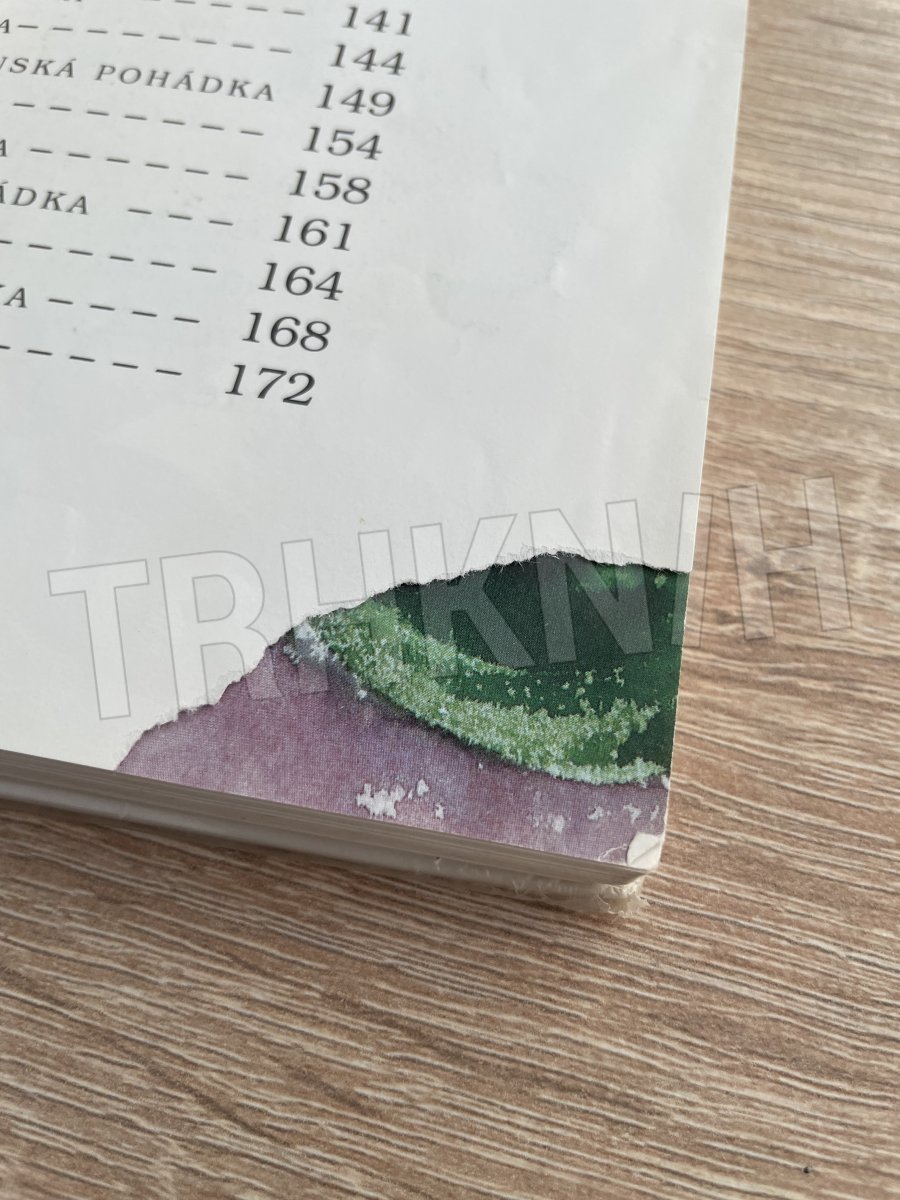 knížka je vyřazena z knihovny (je v ochranném obalu, který jde lehce odlepit a na první stránce je razítko), na třetí straně utržený růžek