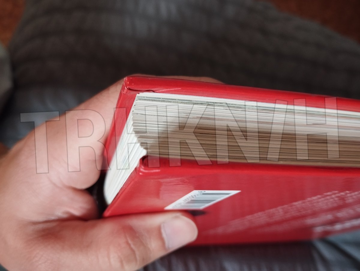 Desky jsou ošoupané, je na nich více rýh, přední list je přehnutý.
