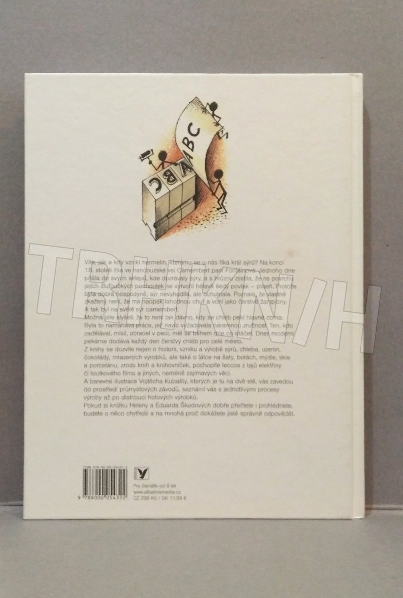 Víte, jak se dělá čokoláda a jak se vyrábí cukr? A proč se sýr jmenuje camembert, či hermelín? Z čeho jíme, pijeme a kde bydlíme? Kdo neví, hned se dozví! A nejen to – i jak vzniká porcelán, mýdlo, látka, nářadí, nábytek, kniha, film a spousta dalších předmětů kolem nás. Poznáte výrobky a jejich výrobní procesy v dobách dávných i nedávných. Kniha je plná ilustrací a vypráví o běžných věcech, které mnohdy bereme denně do ruky.