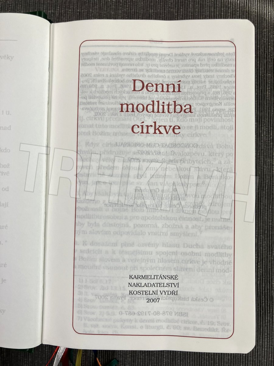 Toto jednosvazkové vydání Denní modlitby církve tzv. breviáře, obsahuje všechny texty na celý rok pro ranní chvály, modlitbu uprostřed dne, nešpory a modlitbu před spaním; je určené pro ty, kdo nemají povinnost modlit se denně všechny části včetně modlitb