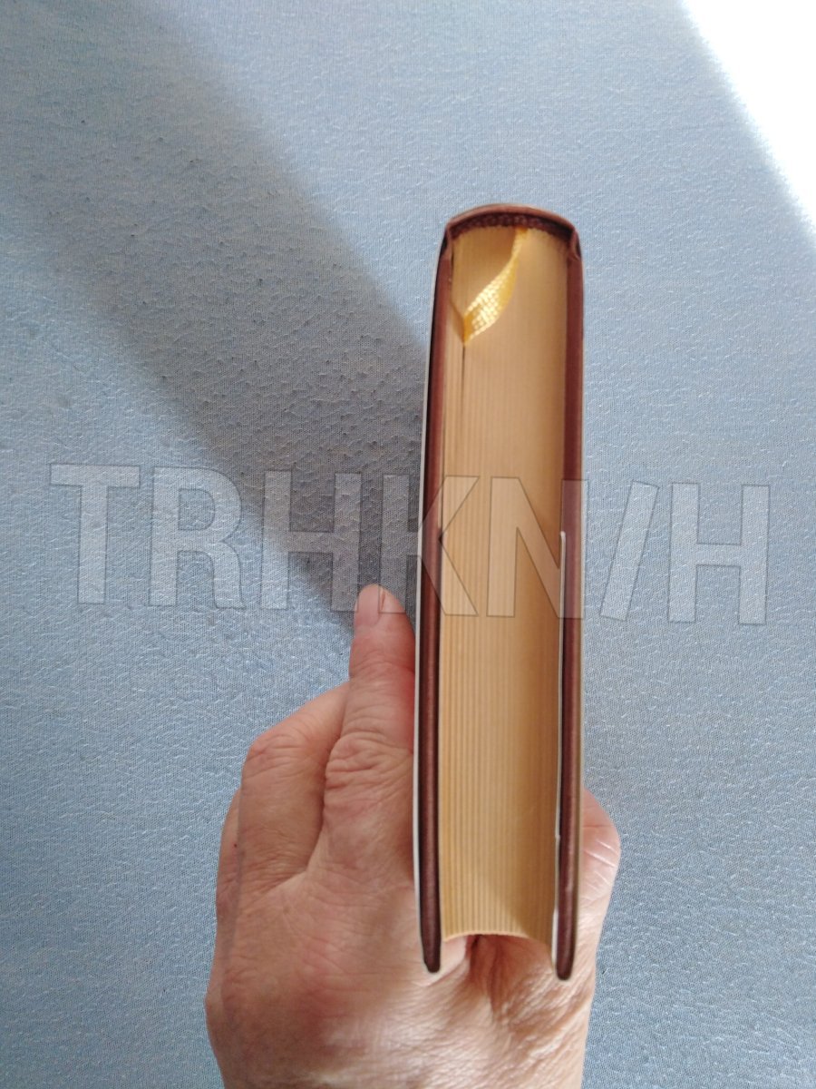 Přebal je na hřbetu nahoře trochu pomačkaný, vzadu na deskách je otlačenina, okraje listů jsu lehce zažlutlé.