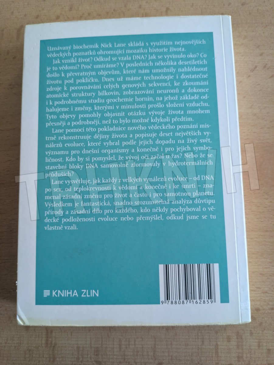 Uznávaný biochemik Nick Lane skládá s využitím těch nejnovějších vědeckých poznatků ohromující mozaiku historie života. Jak vznikl život? Odkud se vzala DNA? Jak se vyvinulo oko? Co je to vědomí? Proč umíráme? V posledních několika desetiletích došlo k převratným novým objevům, které nám umožnily nahlédnout životu pod pokličku. Dnes už máme technologie i dostatečné zdroje k porovnávání celých genových sekvencí, zkoumání atomické struktury bílkovin, zobrazování přemýšlejících neuronů a dokonce i k podrobnému studiu geochemie hornin, s jehož pomocí odhalujeme i změny, kterými v minulosti prošlo složení vzduchu. Tyto objevy pomohly objasnit otázku vývoje života mnohem přesněji a podrobněji než kdykoli předtím. Lane s pomocí této pokladnice nového vědeckého poznání mistrně rekonstruuje dějiny života a popisuje deset největších vynálezů evoluce zvolených podle jejich dopadu na žijící svět, významu pro dnešní organismy a konečně i pro jejich symboličnost. Kdo by si pomyslel, že vývoj očí začal u na světlo citlivých míst na řasách, která sloužila k regulaci fotosyntézy? Nebo že se stavební bloky DNA samovolně zformovaly v hydrotermálních průduších? Lane vysvětluje, jak každý z velkých vynálezů evoluce - od DNA po sex, od teplokrevnosti k vědomí a konečně i ke smrti - znamenal zásadní změnu pro život a často i pro samotnou planetu. Výsledkem je fantastická, snadno srozumitelná analýza důvtipnosti přírody a zásadní dílo pro každého, kdo někdy pochyboval o vědecké podloženosti evoluce nebo přemýšlel, odkud jsme se tu vlastně vzali.