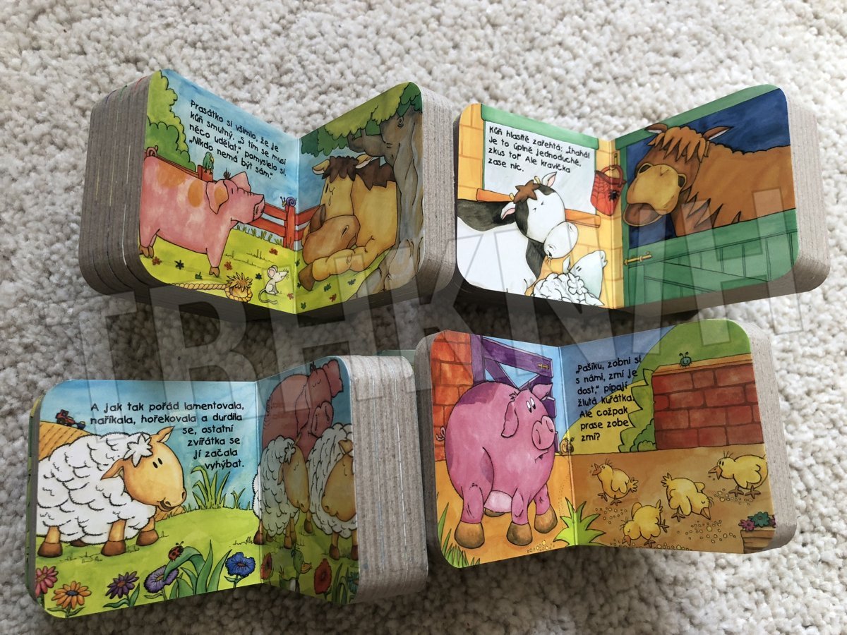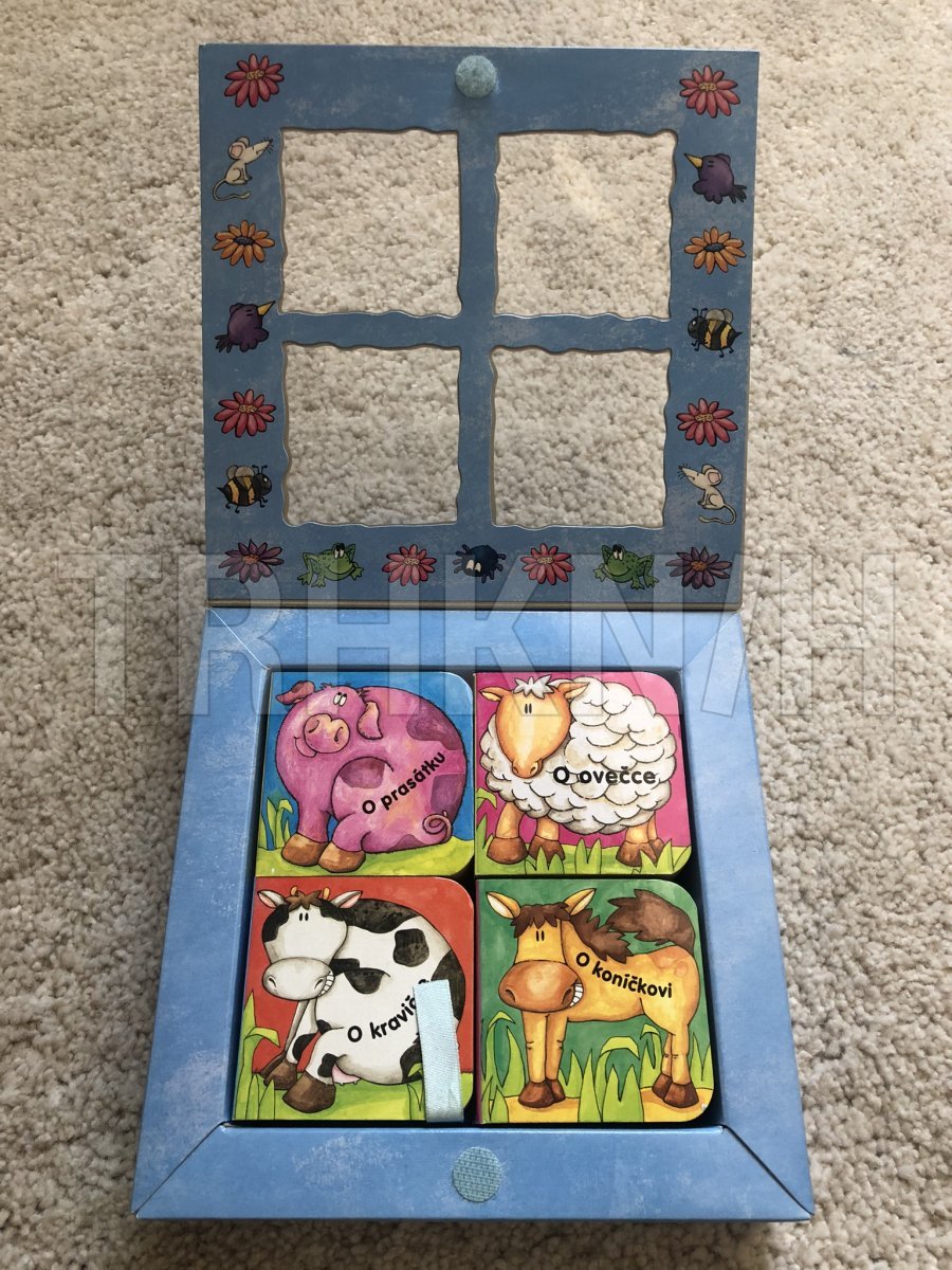 V této krabičce naleznete čtyři malé knížky s docela malými příběhy pro nejmenší děti. Kravička, kůň, ovečka a prasátko vás zvou k návštěvě venkovského statku.