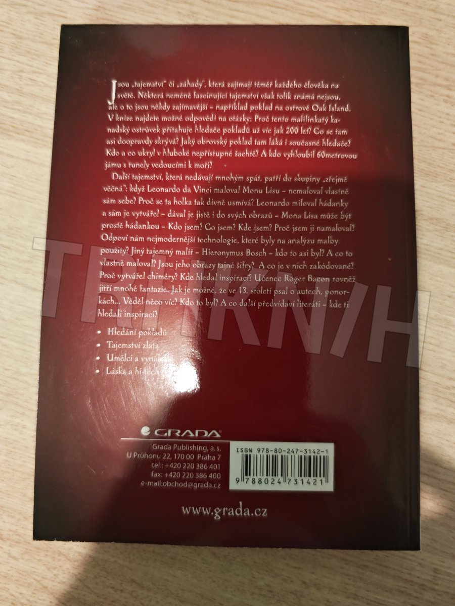 V knize najdete možné odpovědi na otázky: Proč malilinkatý kanadský ostrůvek přitahuje hledače pokladů už víc jak 200 let? Jaký obrovský poklad tam láká i současné hledače? Kdo a co ukryl v hluboké nepřístupné šachtě? Další tajemství, která nedávají mnohým spát, patří do skupiny "zřejmě věčná": když Leonardo da Vinci maloval Monu Lisu - nemaloval vlastně sám sebe? Odpoví nám nejmodernější technologie, které byly na analýzu malby použity? Jiný tajemný malíř - Hieronymus Bosch - kdo to asi byl? A co to vlastně maloval? Jsou jeho obrazy tajné šifry? A co je v nich zakódované? Kde hledal inspiraci? Učenec Roger Bacon rovněž jitří mnohé fantazie. Jak je možné, že ve 13. století psal o autech, ponorkách… Věděl něco víc? Kdo to byl? A co další předvídaví literáti - kde ti hledali inspiraci?