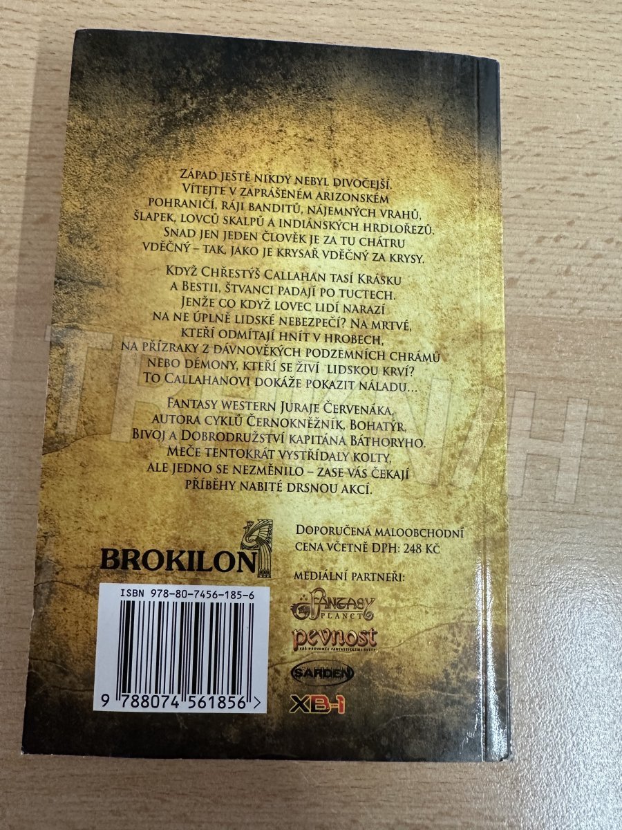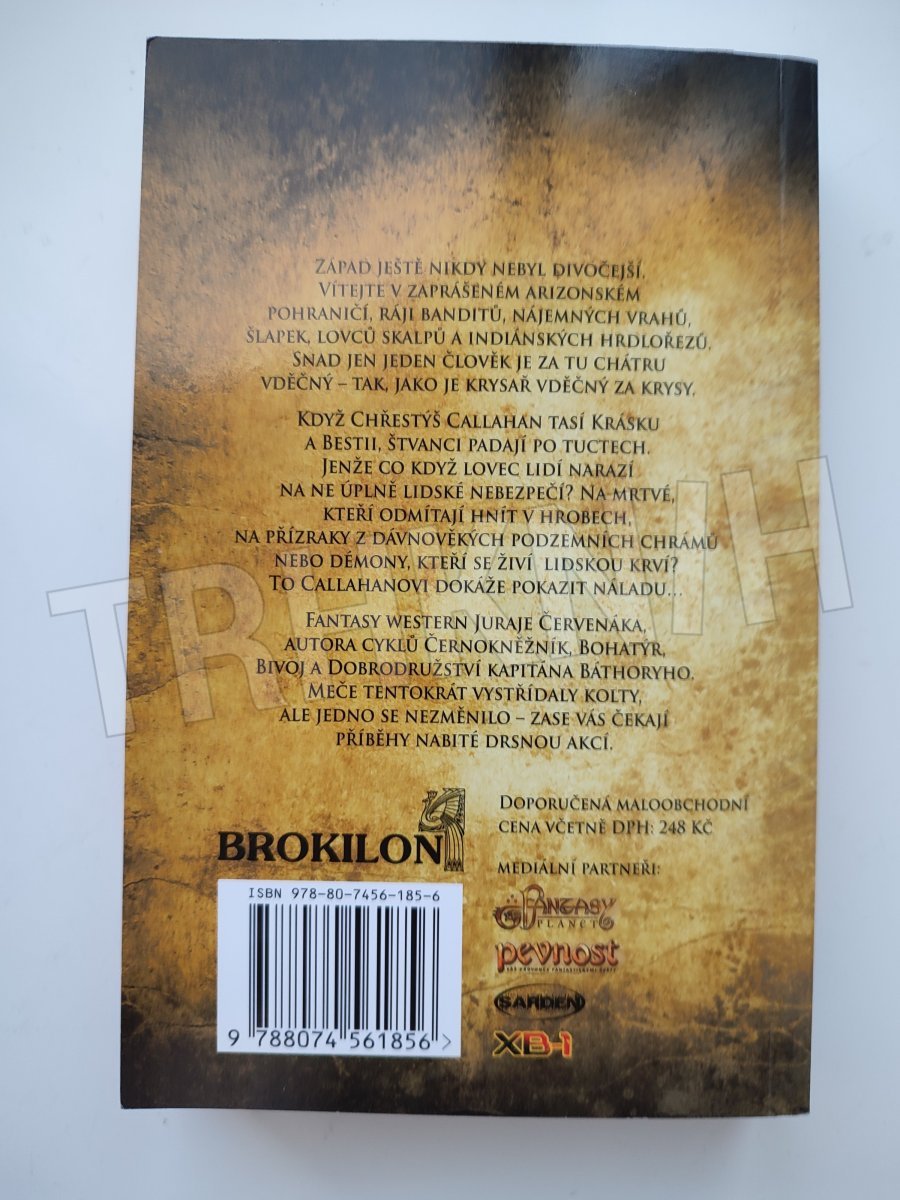 Západ ještě nikdy nebyl divočejší. Vítejte v zaprášeném arizonském pohraničí, ráji banditů, nájemných vrahů, šlapek, lovců skalpů a indiánských hrdlořezů. Snad jen jeden člověk je za tu chátru vděčný – tak, jako je krysař vděčný za krysy. Když Chřestýš Callahan tasí Krásku a Bestii, štvanci padají po tuctech. Jenže co když lovec lidí narazí na ne úplně lidské nebezpečí? Na mrtvé, kteří odmítají hnít v hrobech, na přízraky z dávnověkých podzemních chrámů nebo démony, kteří se živí lidskou krví? To Callahanovi dokáže pokazit náladu… Fantasy western Juraje Červenáka, autora cyklů Černokněžník, Bohatýr, Bivoj a Dobrodružství kapitána Báthoryho. Meče tentokrát vystřídaly kolty, ale jedno se nezměnilo – zase vás čekají příběhy nabité drsnou akcí.