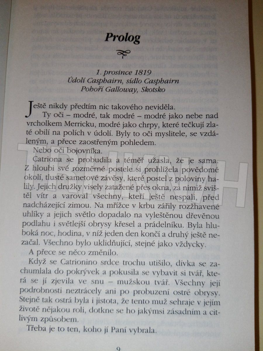 Když zemřel Seamus McEnery, zanechal po sobě podivnou závěť. Stanovil, že se má jeho svěřenka Catriona, kněžka Paní světa, provdat za Richarda, v rodině známého jako Skandál, nemanželského syna jeho zesnulé první ženy. Stejné poselství dala Catrioně ve snu i její Paní. Catriona nic nechápe... Úplně se vzepřít osudu se ale neodváží. Rozhodne se, že s Richardem bude mít dítě – dceru a pokračovatelku rodinné tradice. Podaří se jí Richarda spolehlivě uspat... ale zase ne tak úplně a tajně se vplížit do jeho ložnice? A co vzejde z oné opojné noci nabité erotikou? Půvabné vyprávění zasazené do počátku devatenáctého století na skotské Vysočině je prodchnuto prastarými rituály ve starobylém kamenném kruhu, kouzelnými amulety, prapůvodní silou, která řídila kroky lidstva v minulosti a zachovala se už jen v tomto zapomenutém údolí...