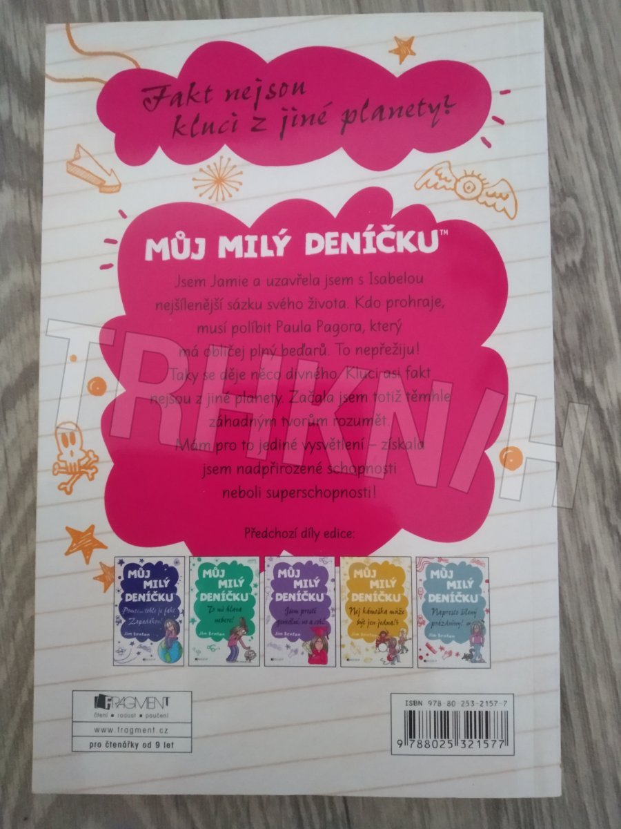 Jsem Jamie a uzavřela jsem s Isabelou nejšílenější sázku svého života. Kdo prohraje, musí políbit Paula Pagora, který má obličej plný beďarů. To nepřežiju! Taky se děje něco divného. Kluci asi fakt nejsou z jiné planety. Začala jsem totiž těmhle záhadným tvorům rozumět. Mám pro to jediné vysvětlení – získala jsem nadpřirozené schopnosti neboli superschopnosti!