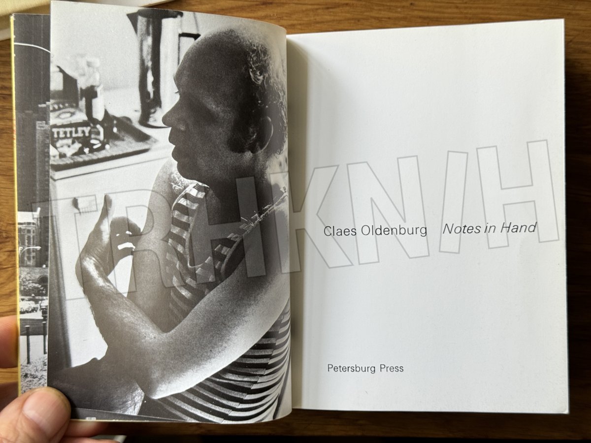 14,5x10,5 cm. (10), 50, (22) pp. + 50 full color plates. Soft cover. A selection of 50 pages from Oldenburg's private notebooks. Rozměr 14,5 x 10,5 cm. (10), 50, (22) str. + 50 plnobarevných desek. Měkký obal. Výběr 50 stran z Oldenburgových soukromých sk