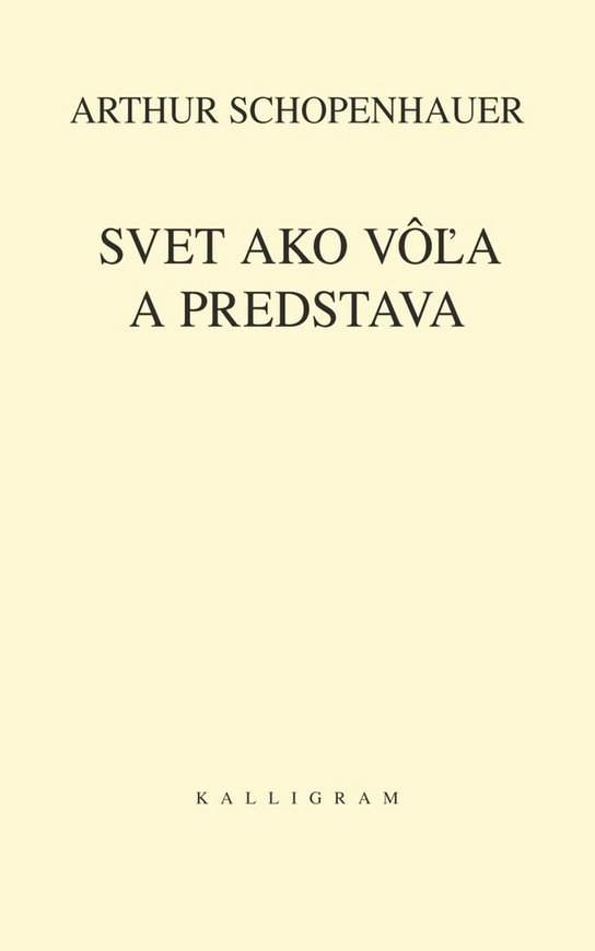 Svet ako vôľa a predstava – hlavné dielo Arthura Schopenhauera – je výsledkom autorovho celoživotného myšlienkového úsilia a predstavuje ucelený súhrn jeho filozofických názorov a životných postojov. Pozostáva z dvoch zväzkov. Prvý zväzok načrtáva tridsaťročný Schopenhauer s geniálnym rozmachom za jediný rok a podáva v ňom systematický výklad celej svojej voluntaristickej filozofickej koncepcie. Obsah tohto zväzku rozčleňuje do štyroch kníh. Prvé dve sa zaoberajú metafyzikou, tretia estetikou a štvrtá etikou. Záverečnú, piatu časť prvého zväzku tvorí rozsiahly Dodatok venovaný polemike s myslením Immanuela Kanta, na ktorého kľúčové idey Schopenhauer priamo nadväzuje. Druhý zväzok vzniká pomaly a postupne v priebehu ďalších dvadsiatich piatich rokov Schopenhauerovho života. Prvý raz vychádza v roku 1844 ako súčasť druhého vydania práce. Tvoria ho štyri knihy doplnkov k prvému zväzku, v ktorých podrobnejšie rozpracúva, ilustruje a komentuje nosné idey svojho filozofického systému. Tieto doplnky podobne ako jednotlivé paragrafy prvého zväzku majú charakter samostatných, ucelených filozofických esejí a vyznačujú sa brilantným jazykom a vybrúseným literárnym štýlom.
