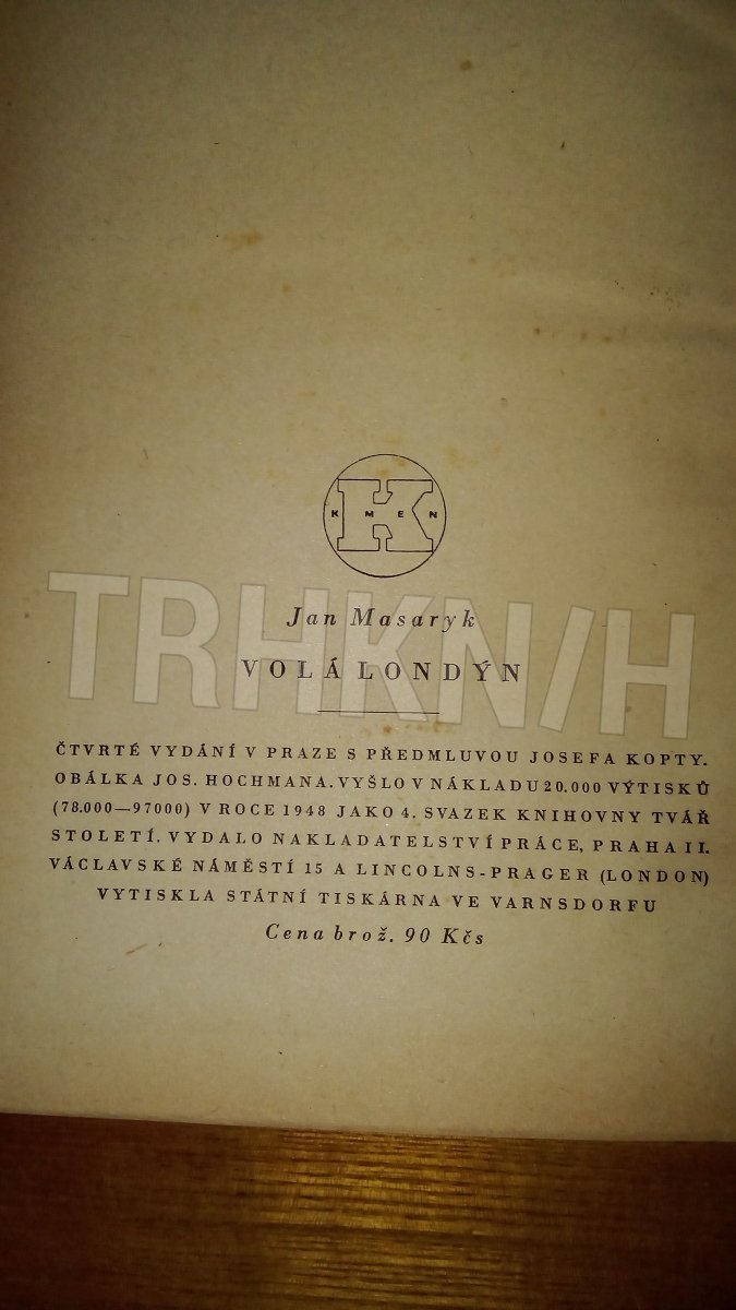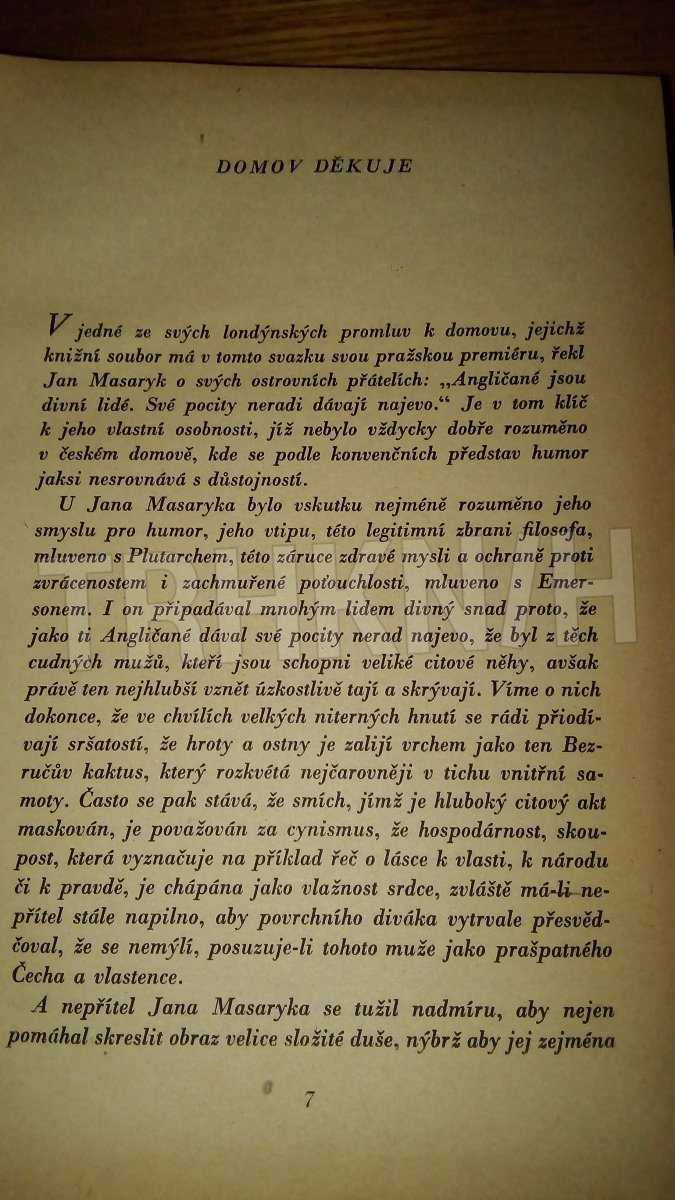 zajímavá dobová vazba, obálka vevázána, přiložena fotografie Jana Masaryka...