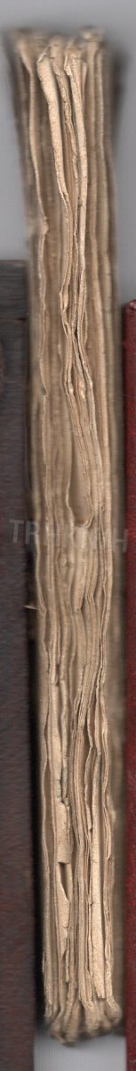 desky jsou zahnědlé a rozpadlé, listy / na prvním je podpis a razítko / jsou zažloutlé, ušpiněné / stářím / a ořízka je odřená, na předních dvou listech je hnědá skvrna,