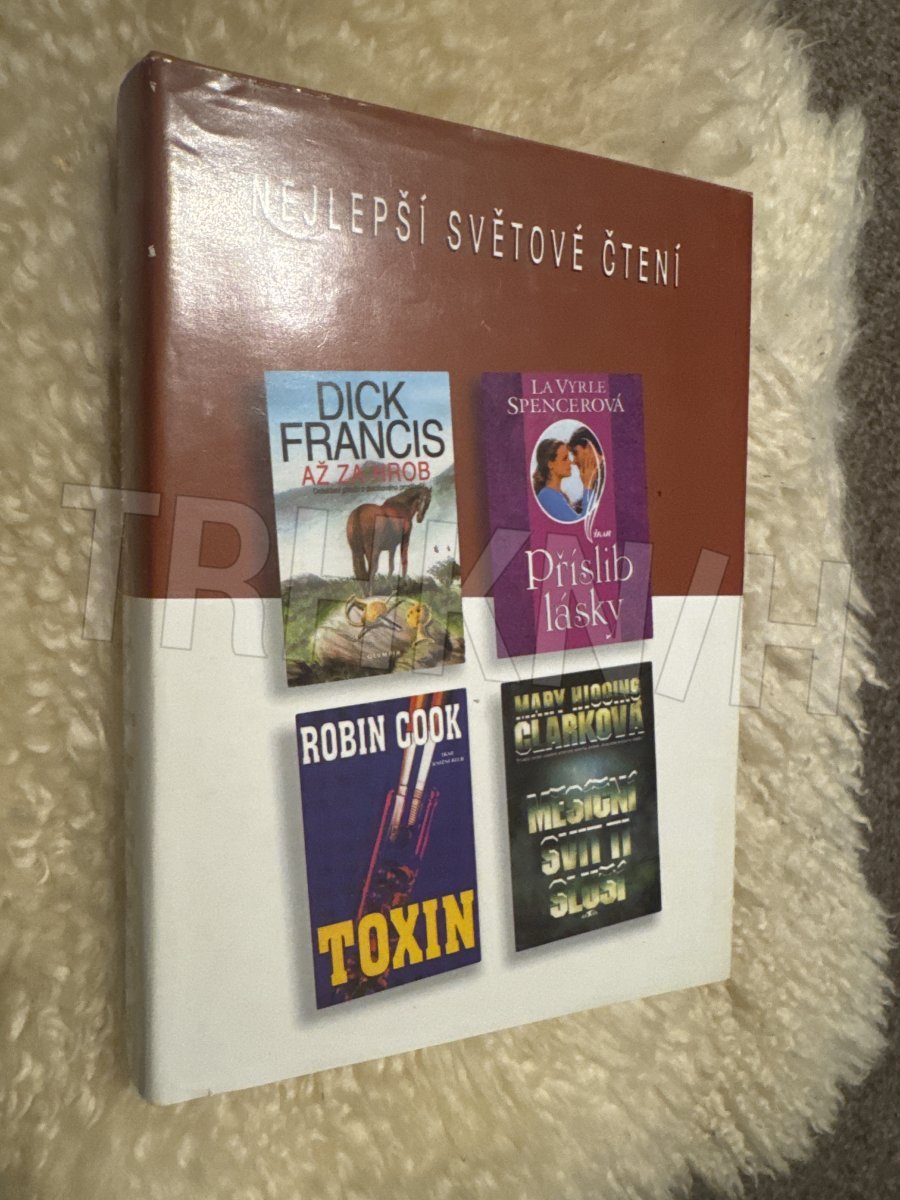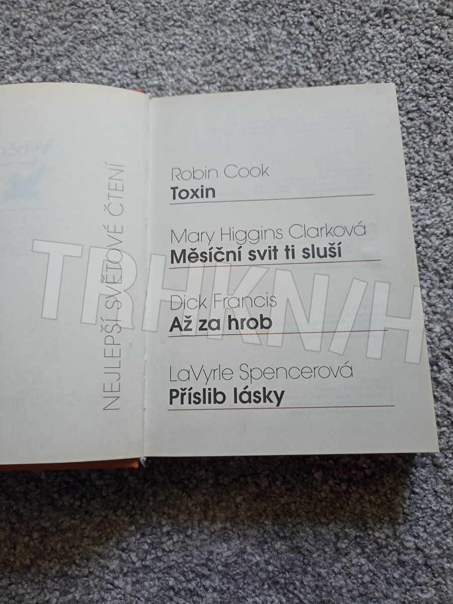 Svazek obsahuje zkrácené verze čtyř úspěšných románů světových autorů různých žánrů. Jednotlivé tituly jsou doplněny stručnými medailony autorů. / Toxin - Robin Cook / Měsíční svit ti sluší - Mary Higgins Clarková / Až za hrob - Dick Francis / Příslib lásky - LaVyrle Spencerová
