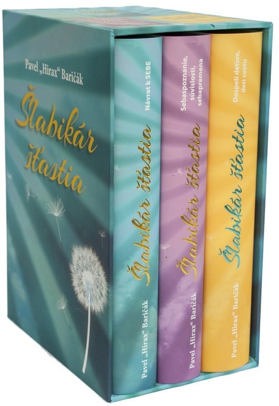 Prvé tri diely úspešnej série motivačných kníh, ktorých sa dokopy predalo takmer 200 tisíc kusov, teraz prvýkrát vychádzajú v pevnej väzbe a v luxusnom kartónovom balení. Ak patríte medzi ľudí, ktorí sa ešte stále hľadajú, prípadne, ktorí majú pocit, že by sa im zišla výrazne vyššia dávka spokojnosti, ako sa im dostáva, potom určite siahnite po tomto luxusnom balení. Upozornenie: jedná sa o obmedzenú, tisíckusovú edíciu. Ak váhate, dlho nepremýšľajte. Šlabikár šťastia (Návrat k SEBE) Hirax vás nenútenou a pozitívnou cestou navedie k znovuobjaveniu vlastného dieťaťa v sebe, opäť z vás pokúsi stvoriť prirodzených bláznov a pošepne vám návod, ako sa stať bytosťou, ktorá zoberie vlastný život do svojich rúk. Baričák totiž neverí na zmenu cez politikov. Jeho rovnica je iná a jednoduchá: zmeňte seba, dajte to cez lásku deťom a tie zmenia zajtrajšok.... Šlabikár šťastia 2. (Sebaspoznanie, súvislosti, sebapremena) Pavel Hirax Baričák sa bude snažiť odpovedať, prečo sa človeku neplní to, po čom túži, ako urýchliť zámer (obetou a pokorou), prízvukuje dôležitosť vďačnosti, sebaodpustenia, zastavenia prehnaného ospravedlňovania a sebaobviňovania. Príde na riešenie následkov ohovárania, závisti, vzniku chorôb, skrytého pocitu viny s následkom karavany bolestí.... Šlabikár šťastia 3. (Dospelí deťom, deti svetu) Kto učí, učí sa. Ďakujme za deti, nie sú samozrejmosťou, ale darom. Prišli más liečiť a ukazovať nám, kde máme zápal. Psychologický prieskum ukázal, že iba desať percent ľudí sa v detstve môže rozvíjať slobodne a bez utláčania. Na jednu pochvalu pripadá až desať pokarhaní alebo dokonca trestov. Následkom týchto raných frustrácií, duševných poranení a sklamaní sme menej istí, bojazlivejší, plní strachov. Je to záležitosť zle určenej vlastnej ceny. Takýmto ľuďom chýba sebavedomie, vnútorná vyrovnanosť, predpoklad umenia byť šťastný.