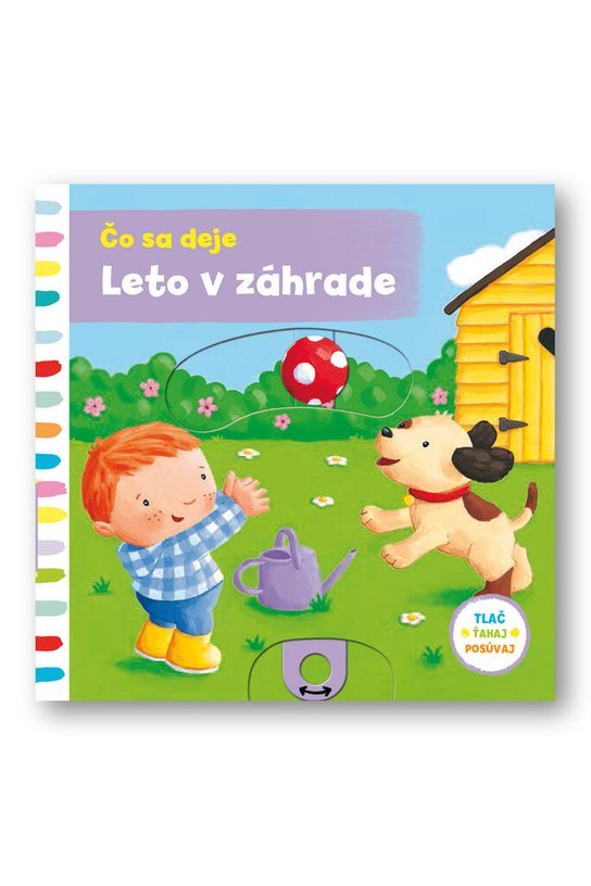 Zaujíma ťa leto v záhrade? Čo sa tu všetko deje? Vezmi kanvičku a zalej kvety vodou! Pohojdaj chlapca na hojdačke tam a zasa späť! Kam odletia motýle? Toto leporelo je určené deťom od jedného roka. Má pevné stránky s posuvnými a otočnými prvkami, a tak si dieťa pri prezeraní knižky súčasne precvičí jemnú motoriku – môže na jednotlivých stránkach posúvať, ťahať, otáčať. Objaví nové veci a môžete sa o nich spoločne rozprávať! Tak rýchlo, v záhrade rastú a voňajú kvety a je tam plno prekvapení!