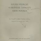 Kniha Soupis vědecké a kritické činnosti Arne Nováka - na paměť svého člena vydal s podporou České akademie věd a umění Pražský linguistický kroužek - Trh knih - online antikvariát