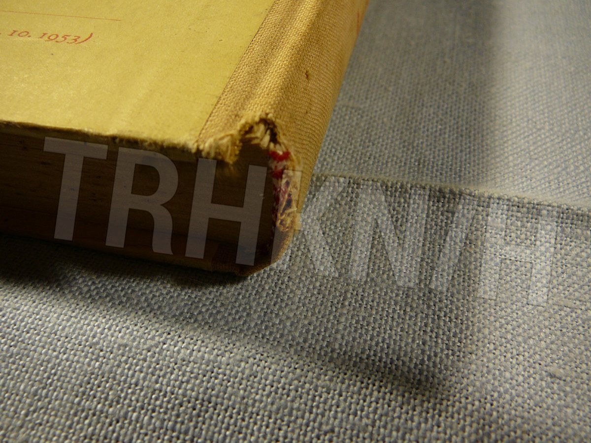Uvnitř velice dobrý stav, ale desky místy zašlé + dole na hřbetu odření / naražení + žluté skvrnky pod vazbou