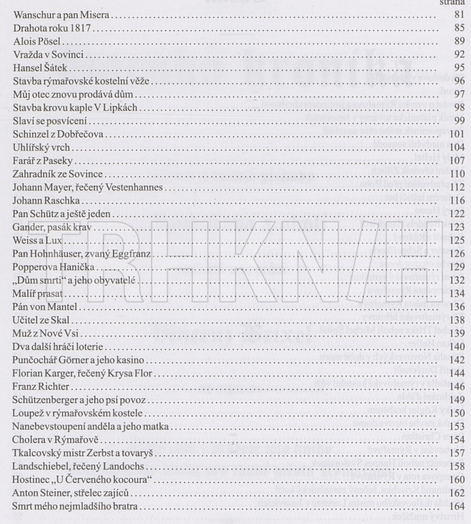 Vážné a veselé příběhy z Rýmařova a okolí, obsahuje 8 nečíslovaných stran obrazových příloh a je psána dvojjazyčně (CZ/D).