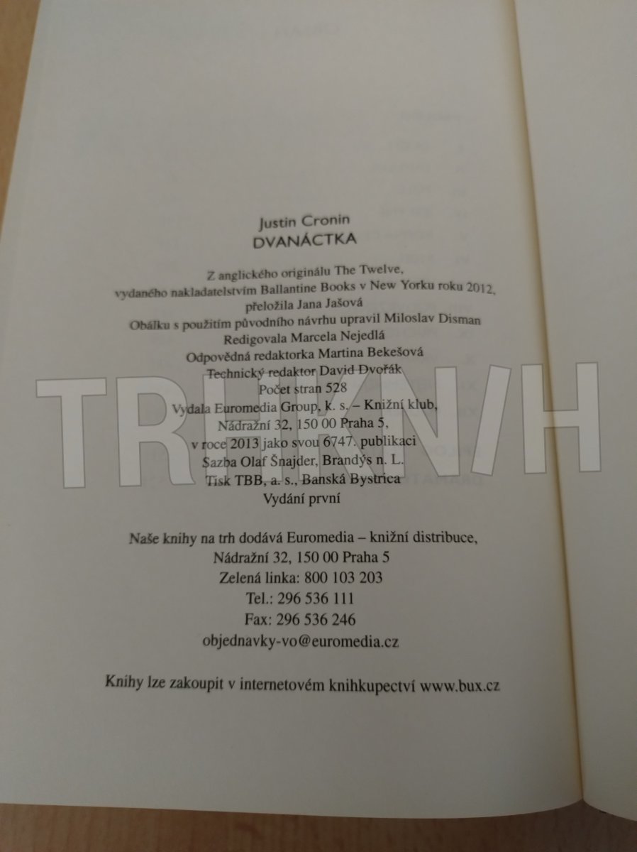 V mezinárodním bestselleru Přechod vytvořil Justin Cronin nezapomenutelný obraz apokalyptického světa, v němž celý americký kontinent zachvátí tajemná „upírská“ infekce. Ve Dvanáctce se příběh vrací do roku Nula. Nakažení lidé se mění ve vraždící nesmrtelná monstra a chaos a zmar postupně ovládá jedno město za druhým. Uprostřed vylidněného světa přežívají zbytky těch, jimž se dosud nákaza vyhnula. Těhotná lékařka Lila, válečný veterán Kittridge a dospívající April se setkávají uprostřed zkázy, aby zjistili, že nejsou úplně sami…Ve sto let vzdálené budoucnosti zatím Amy a její přátelé bojují o přežití posledních potomků lidstva. Jejich nepřítel se však změnil: prvních dvanáct infikovaných totiž usiluje o mnohem víc než jen o povraždění posledních živých bytostí na Zemi.