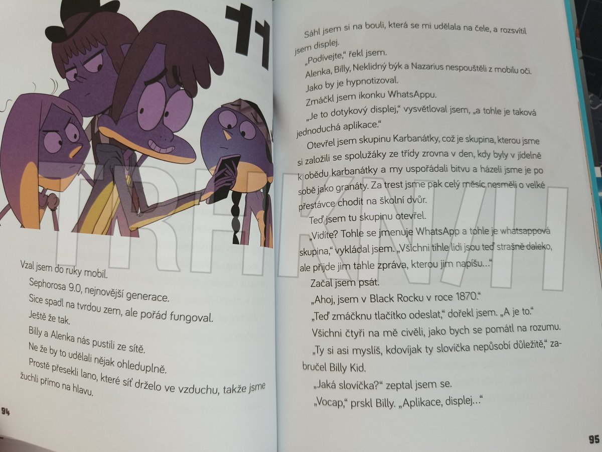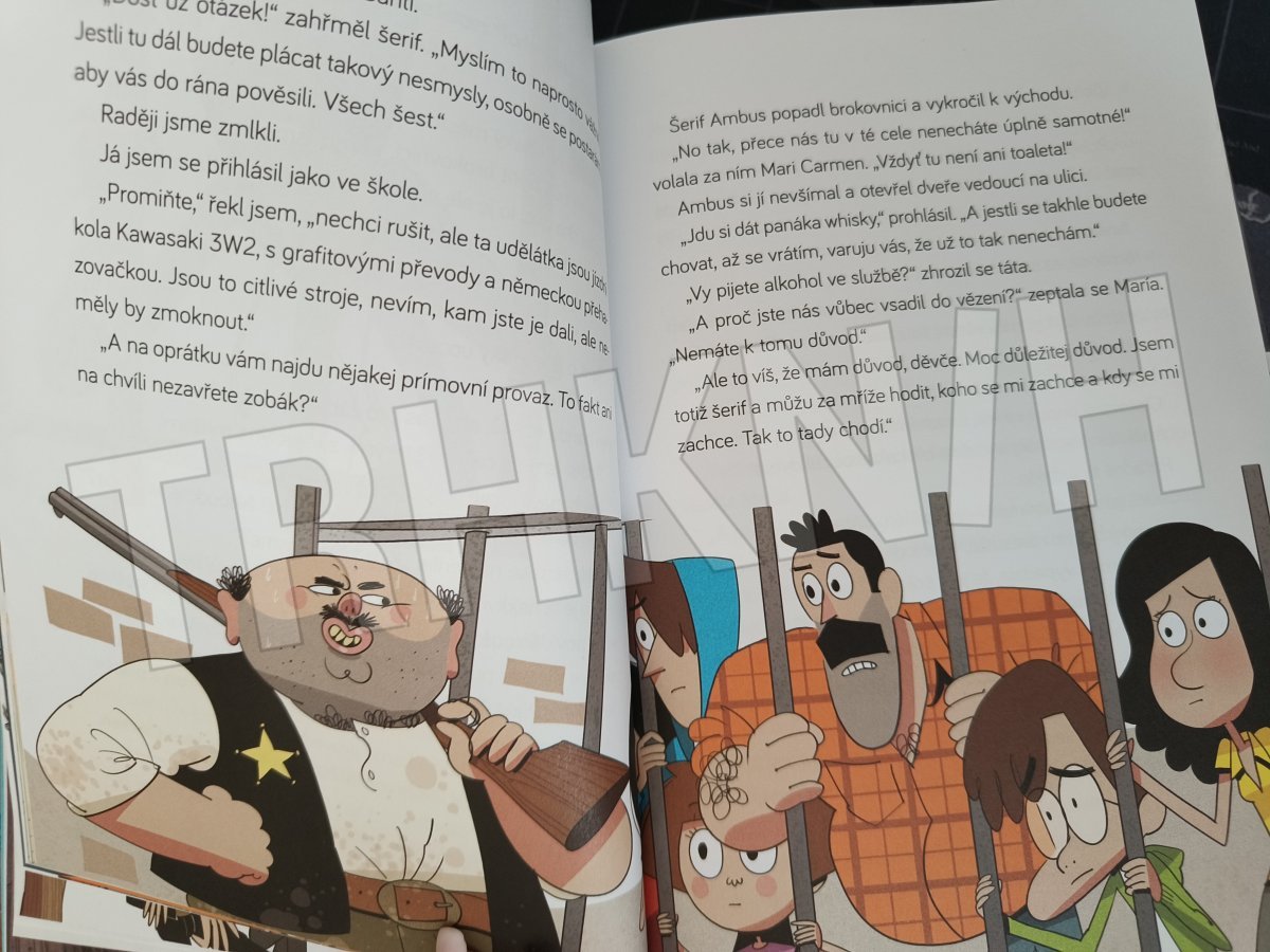 Všechno to začalo jednoho úplně obyčejného dne. Zašli jsme si do obchoďáku v naší čtvrti koupit nová kola. Můj táta, brácha, ségra, naše sousedka Mari Carmen se svou dcerou Maríou a já. Koupili jsme šest nádherných, červených, nablýskaných kol. A zrovna když jsme se na parkovišti chystali šlápnout do pedálů, tak se to stalo: zahřmělo a z nebe udeřil blesk. Pak nás oslepila bílá záře a my jsme se ocitli v městečku Black Rock. V samém srdci Divokého západu!