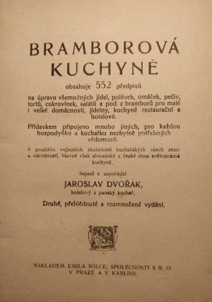 S použ. nejlepš. zkušeností kuchař. všech zemí a národností, hlavně však slovanské a české dnes světoznámé kuchyně seps. a uspořád. Jaroslav Dvořák