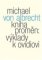 Jen velice málo klasických textů se těší trvalému vlivu a zájmu od chvíle svého vzniku až po současnost. Ovidiovy Proměny do této nečetné skupinky patří: zásadní dílo římské antiky hojně podněcovalo imaginaci ve středověku i za renesance, inspirovalo Danta, Shakespeara, Goetha i Ezru Pounda a dodnes je nesporně živým a oblíbeným textem. Proměny jsou však málokdy vnímány vcelku, tedy s ohledem na kompozici celých knih a celého díla – pozornost se obvykle zastavuje u hranic jednotlivých „historek“. Von Albrechtova Kniha proměn oproti tomu klade důraz na vnímavou estetickou interpretaci v rámcích různé šířky od jednotlivých veršů přes velké textové trsy až po celek Proměn a představuje též Ovidiovo mimořádně silné a soustavné historické působení v literatuře, výtvarném umění i hudbě. Emeritní profesor heidelberské univerzity Michael von Albrecht (nar. 1933) patří k nejváženějším současným znalcům římského písemnictví. Vedle monografií k Ciceronovi, Senekovi, Lucretiovi či Vergiliovi je autorem mezinárodně respektovaných Dějin římské literatury nebo opakovaně vydávané příručky Mistři římské prózy. Současně je vysoce ceněným překladatelem (mj. Ovidia a Catulla) a sám píše poezii v latině. I přes tuto šířku zájmů však ovidiovské interpretace zaujímají v jeho díle zcela jedinečné místo. Počínaje dizertací z roku 1959 se Ovidiovi obecně a Proměnám zvláště věnoval po celou profesní dráhu a pro moderní ovidiovské bádání je postavou natolik ústřední, že mu jeho žáci neváhali přiřknout titul Ovidianissimus.