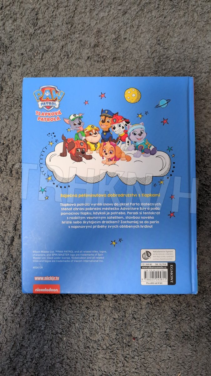 Tlapková patrola vyráží znovu do akce! Parta statečných štěňat chrání pobřežní městečko Adventure Bay a podá pomocnou tlapku, kdykoli je potřeba. Poradí si tentokrát s rozbitým vesmírným satelitem, stavbou nového hřiště nebo škytajícím dráčkem? Zachumlej se do peřin s napínavými příběhy svých oblíbených hrdinů! Obsah:Tlapky zachraňují létající jídlo; Tlapky zachraňují satelit; Tlapky zachraňují obří rostlinu; Hvězdné tlapky; Tlapky a opičí maska; Tlapky zachraňují hravého draka; Tlapky a Velký Chlupáč