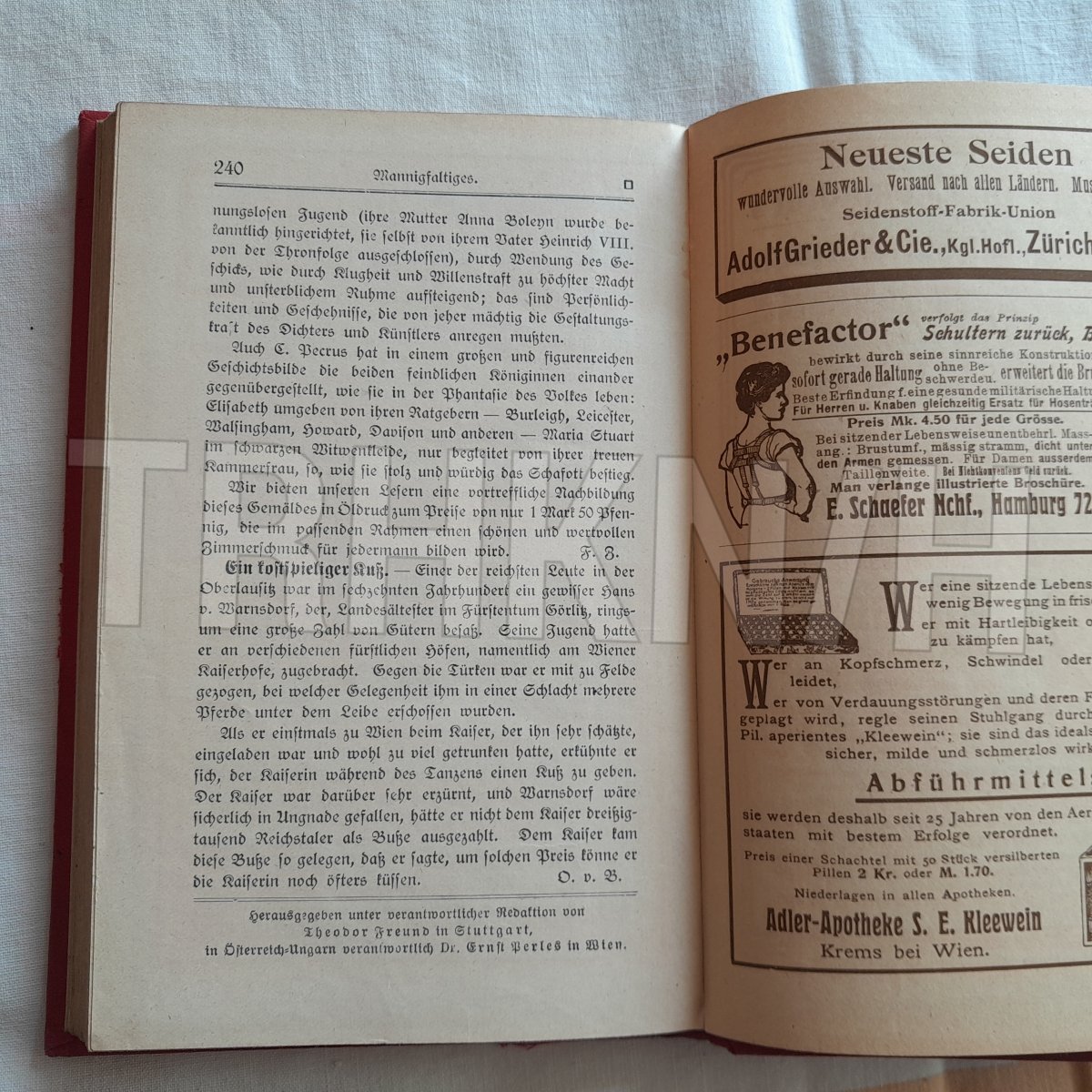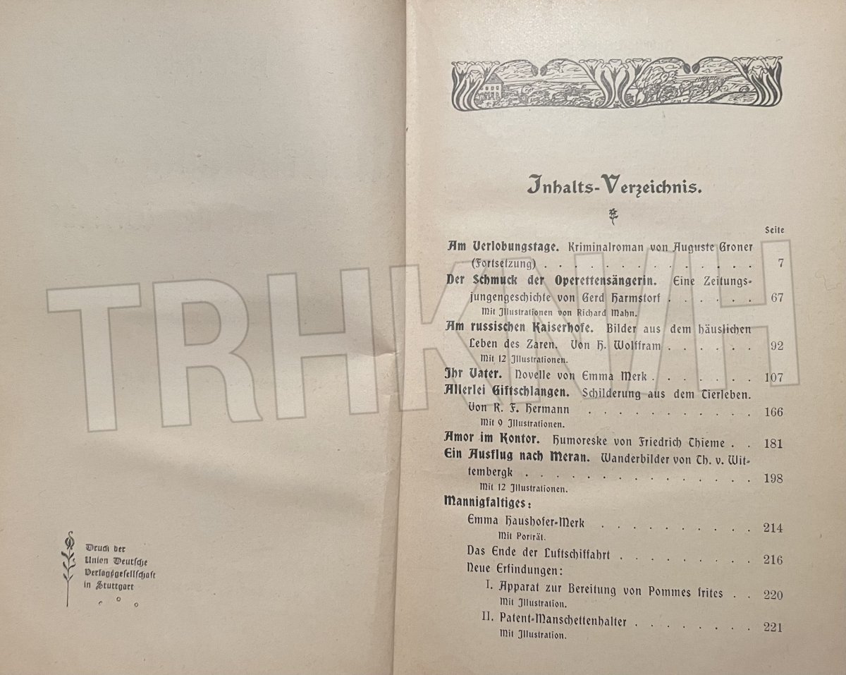 Německé vydání (v kurentu), toto je z roku 1909, byl to měsíčník (čísla od 1-12), zde od 1-12, avšak CHYBÍ č. 6 a č. 8, takže toto se nabízí jako celek celkem 3000 Kč.