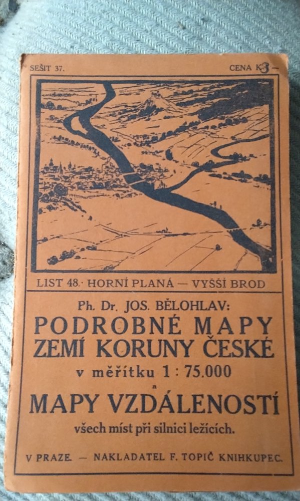 Kniha Podrobné mapy zemí koruny České v měřítku 1:75.000 a mapy vzdáleností všech míst při silnici ležících. - Seš. 37. List 48, - Horní Planá - Vyšší Brod - Trh knih - online antikvariát