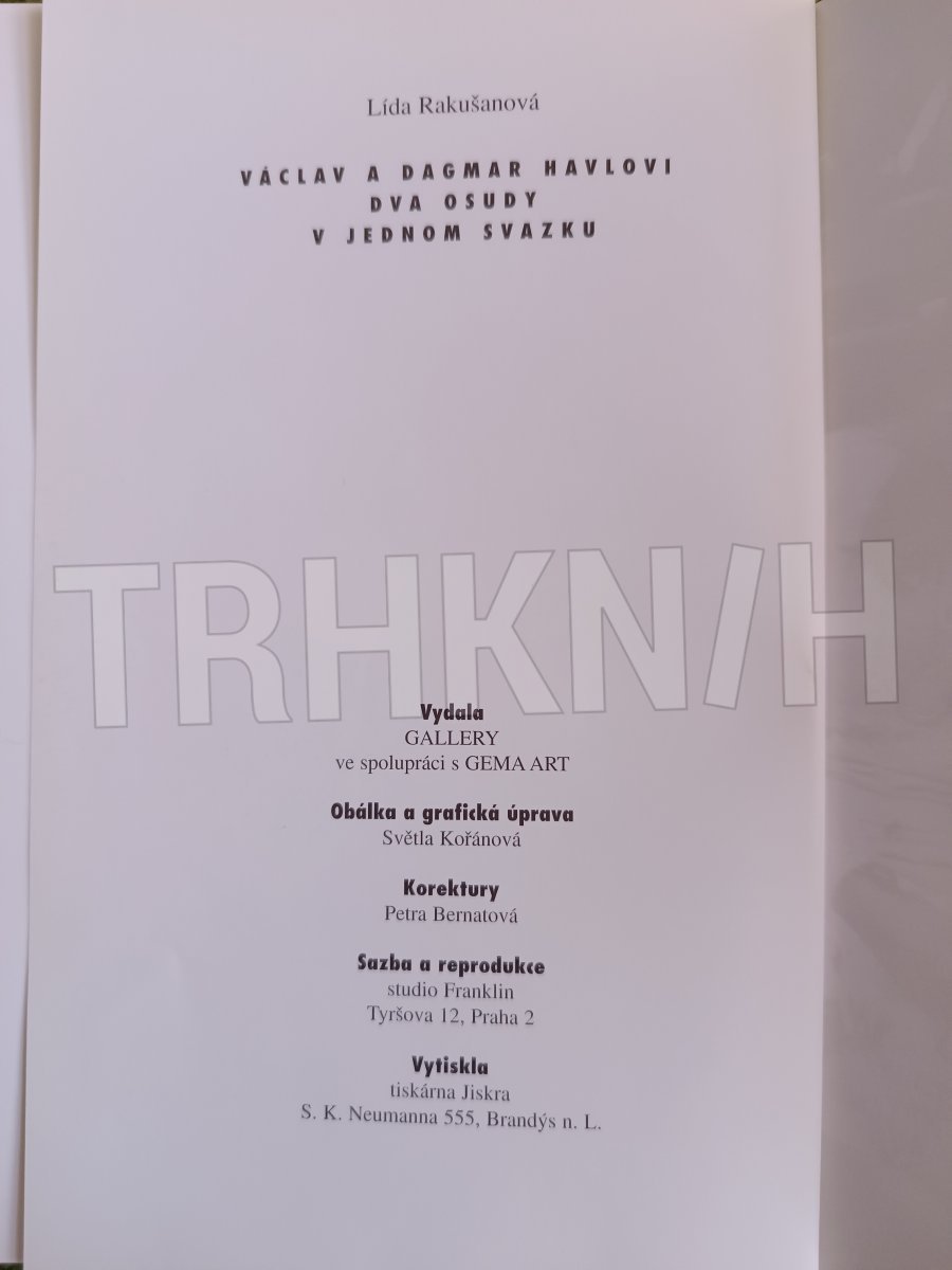 Václav a Dagmar Havlovi : 2 osudy v jednom svazku Autor: Rakušanová, Lída Místo vydání: Praha Počet stran: 138 s. Rok vydání: 1997 Vazba: vázaná Stav: velmi dobrý, neautorská dedikace Nakladatel: Gallery Kategorie: Životopisy Edice, série: kniha Vytvořen