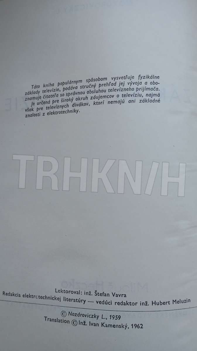 Táto kniha populárnym spôsobom vysvetľuje fyzikálne základy televízie, podáva stručný prehľad jej vývoja a oboznamuje čitateľa so správnou obsluhou televízneho prijímača. Je určená pre široký okruh záujemcov o televíziu, najmä však