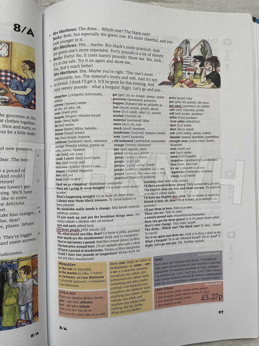 stav: Ohnutý rožek, pár cvičení vyplněných propiskou nebo gumovacím perem. Učebnice je nošená v obalu takže není nijak politá ani jinak zničená