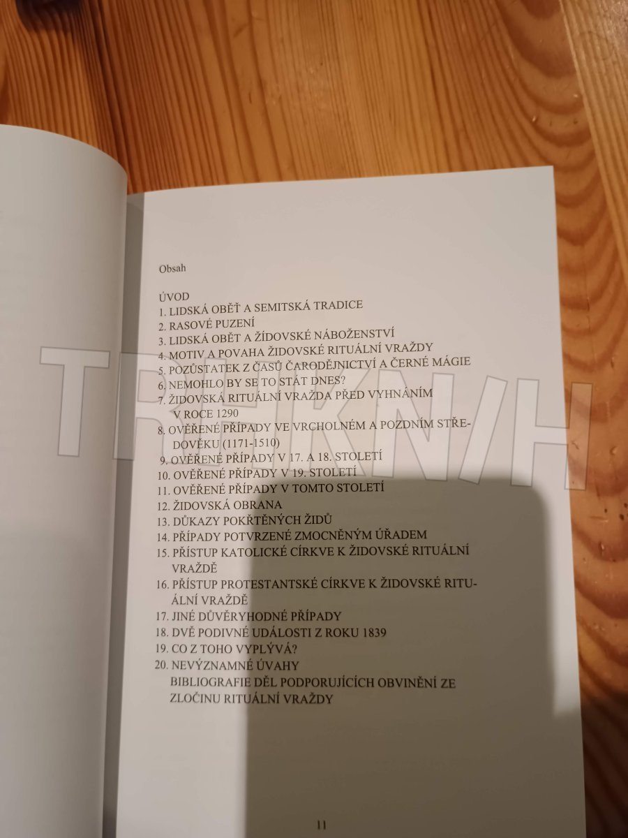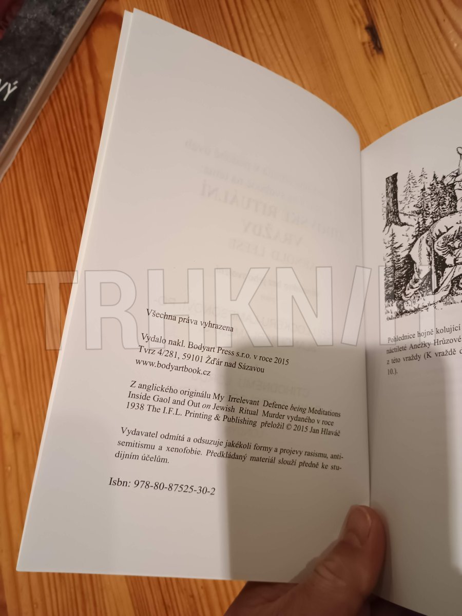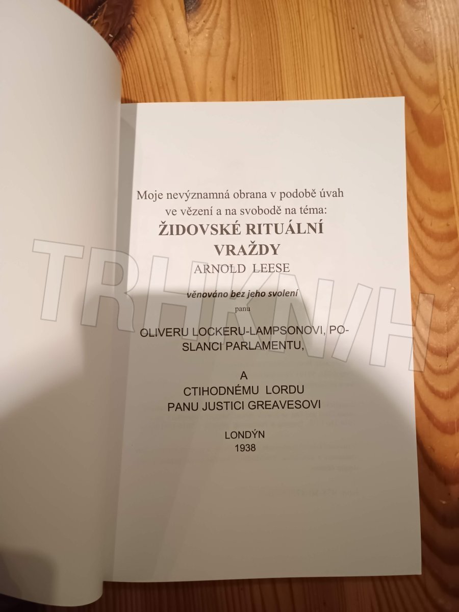 Když je řeč o anglickém politickém myšlení, čtenář si nejspíše vzpomene na stoupence silného státu Thomase Hobbese, teoretika demokratického právního státu Johna Lockea, jednoho z duchovních otců novodobého konzervatismu Edmunda Burka a nejspíš také na socialisticky zaměřenou Fabiánskou společnost. To, že také existuje krajně pravicové protižidovsky zaměřené anglické politické myšlení spojované obvykle s minulostí Německa, bude možná pro mnohého čtenáře překvapením. Toto myšlení představuje tento spis, jehož autorem je inteligentní a vzdělaný Arnold Leese. Pro toho, kdo se zabývá otázkou krajně pravicové politiky a ideologie, bude tato kniha jistě zajímavá.Ve spise pojímaném jako osobní obhajoba se autor zabývá otázkou židovských rituálních vražd v minulosti i současnosti.