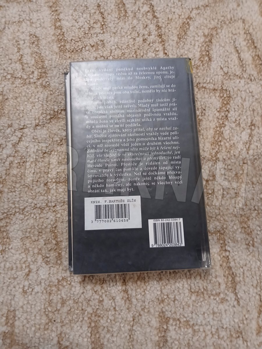 První vydání poněkud neobvyklé Agathy Christie – stopy vedou až za železnou oponu, jeden podezřelý mizí do Moskvy, jiný cituje Lenina. Mladý muž potká mladou ženu, zamilují se do sebe, a protože jsou oba volní, nemělo by nic bránit jejich štěstí. Tento příběh, zdánlivě podobný tisícům jiných, jste však ještě nečetli. Mladý muž totiž právě rozplétá složitou mezinárodní špionážní síť a současně pomáhá objasnit podivnou vraždu, mladá žena ve chvíli setkání utíká z místa vraždy a možná se na ní podílela..